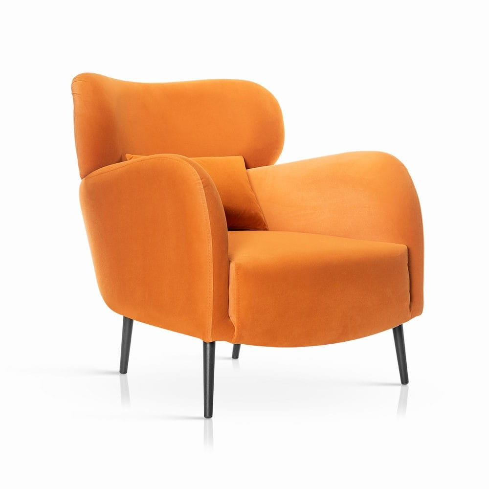 Fotel oparty jest na solidnej konstrukcji, która zapewnia stabilność i trwałość. Nowoczesna linia łączy miękką bryłę z lekkim wizualnie wykończeniem, co pozwala dopasować go do różnych aranżacji.