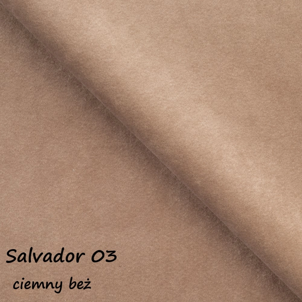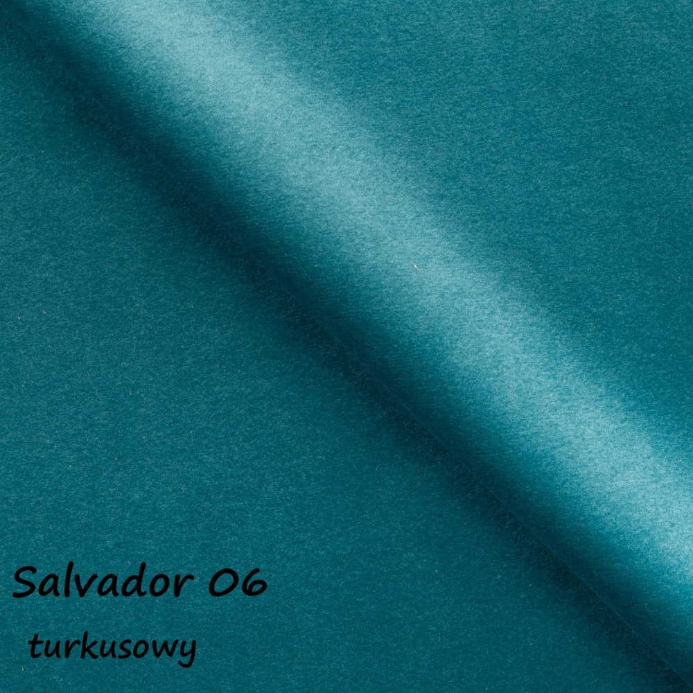 Tkanina Salvador to grubsza, przyjemna w dotyku struktura welurowa, która dobrze znosi codzienne użytkowanie. Wyrazisty kolor podkreśla charakter fotela i pozwala stworzyć mocny punkt aranżacji we wnętrzu.