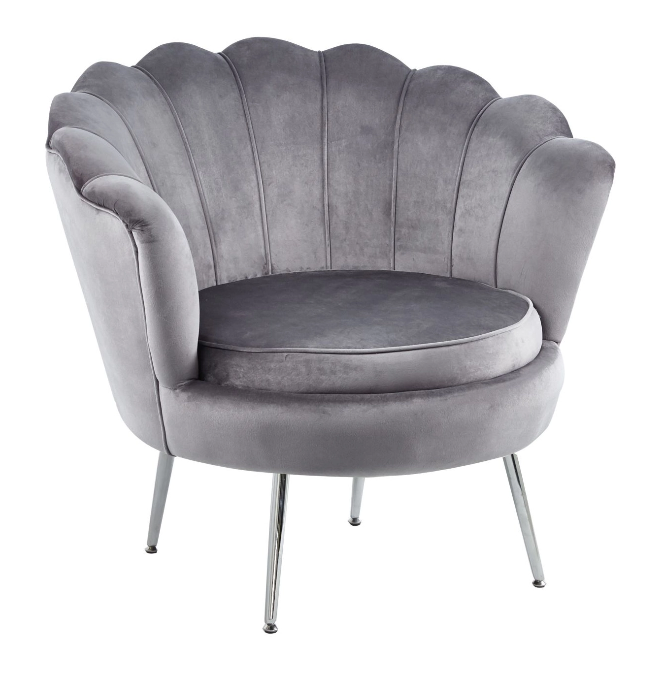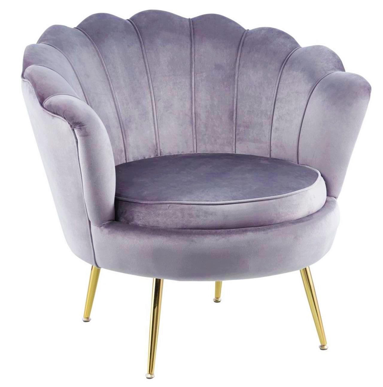 Fotel Muszelka Szary – welurowy fotel glamour z metalowymi nogami