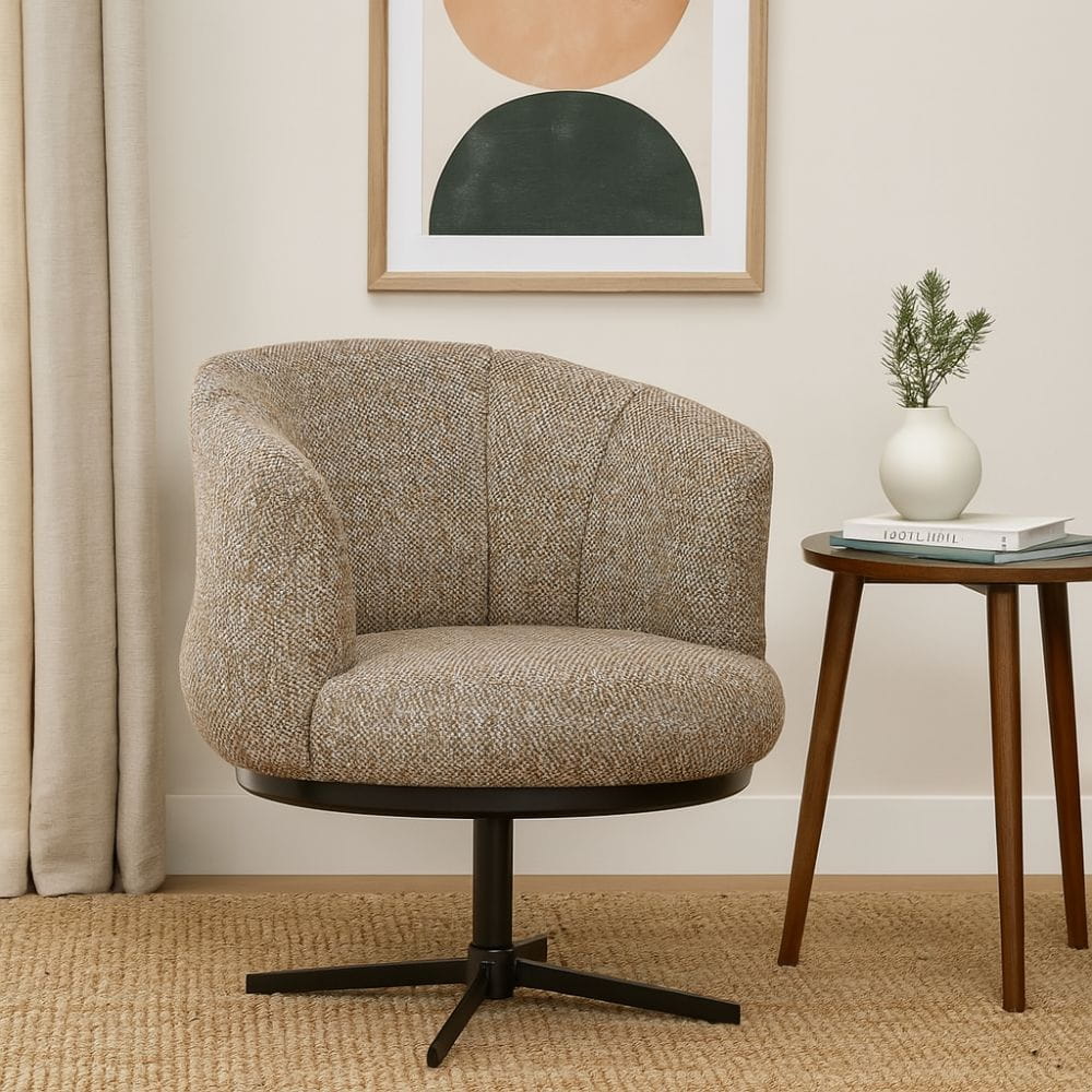 Fotel Assen w tkaninie Dream łączy miękkość, którą czuć, z nowoczesną formą kubełkową i funkcją obrotu. To model, który podnosi komfort codziennego użytkowania i nadaje wnętrzu nowoczesny charakter. Model wykonywany na zamówienie z możliwością dopasowania tkaniny i wykończenia do Twojego wnętrza.