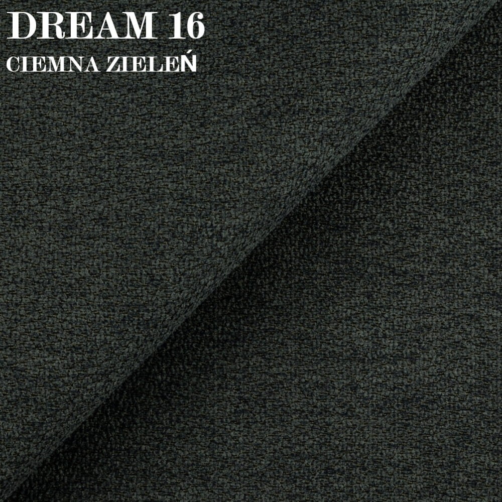 Tkanina Dream jest miękka, trwała i łatwa w utrzymaniu. Model może być wykonany w wielu wariantach tkanin i kolorów podstawy, co pozwala idealnie dopasować go do wnętrza.