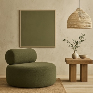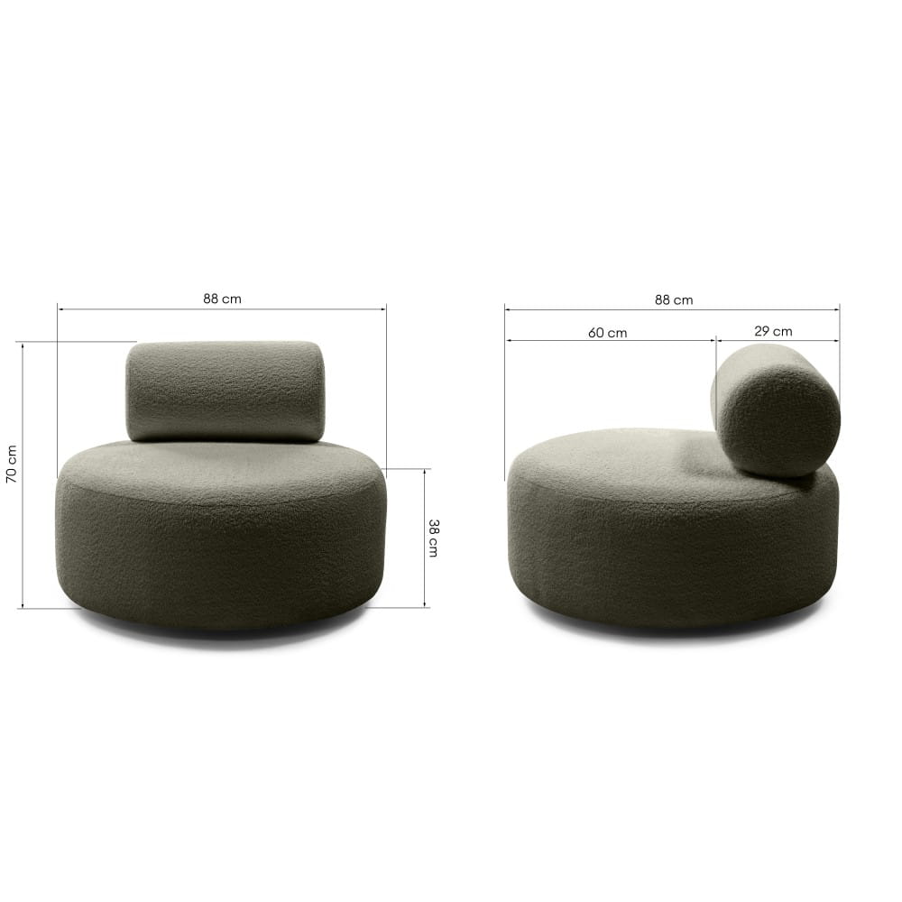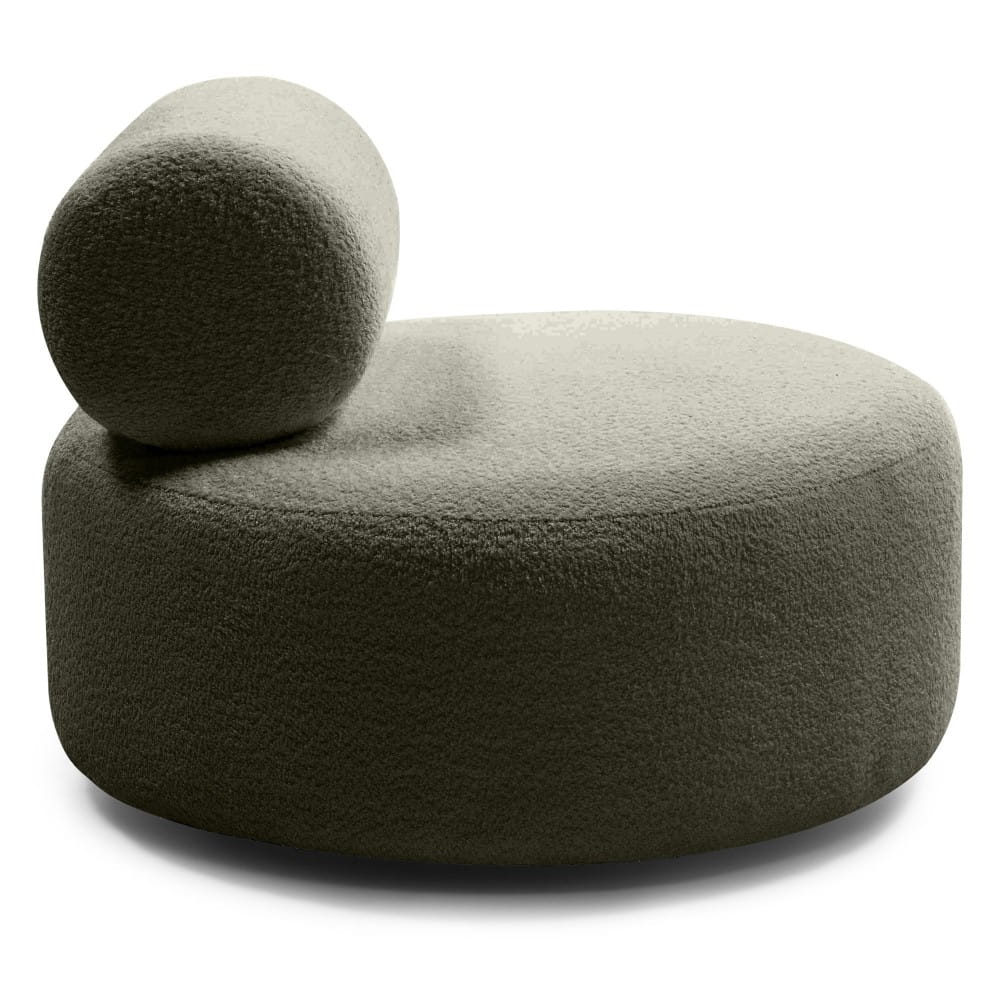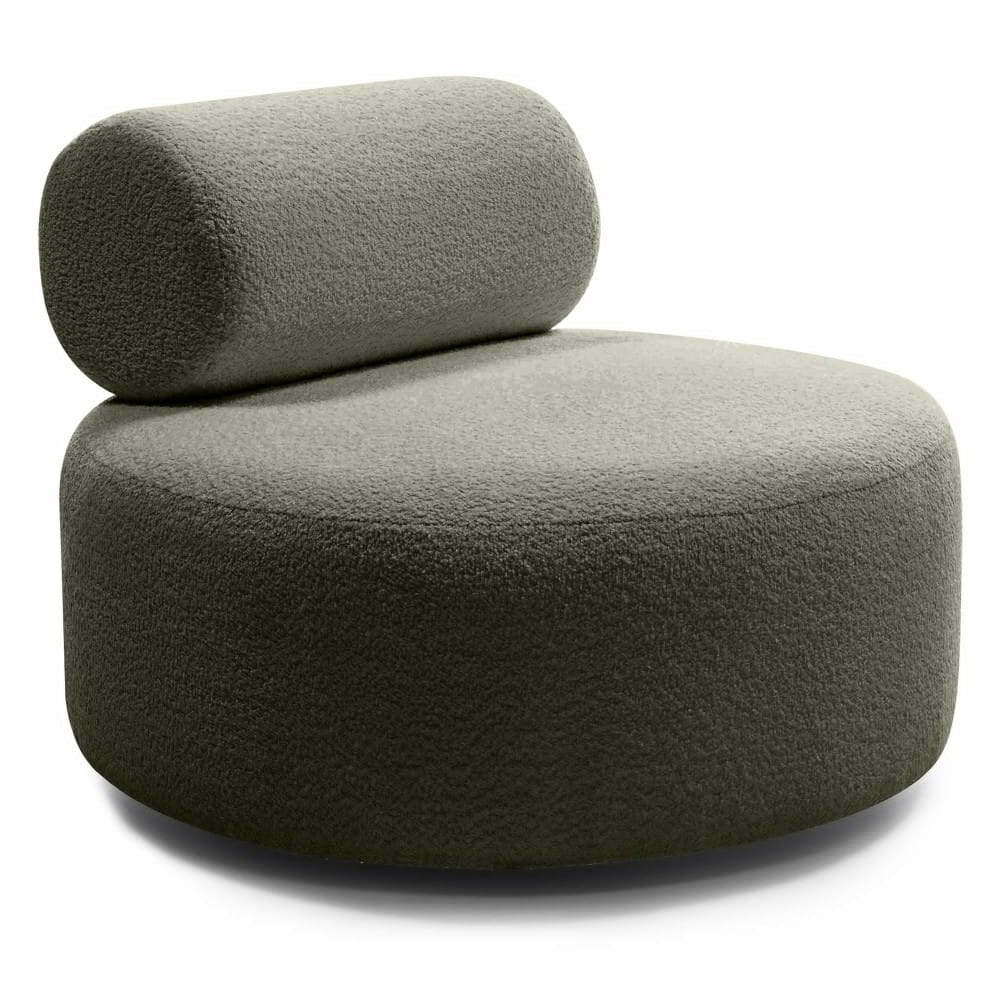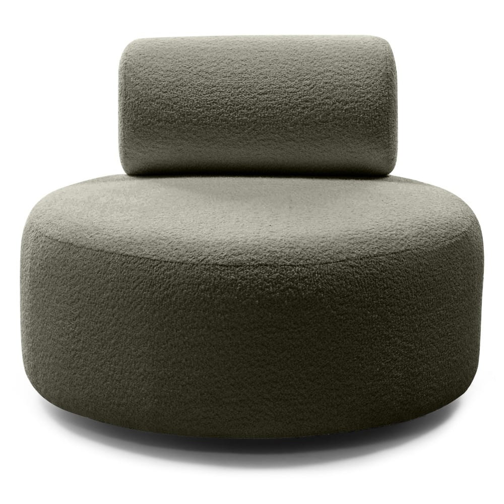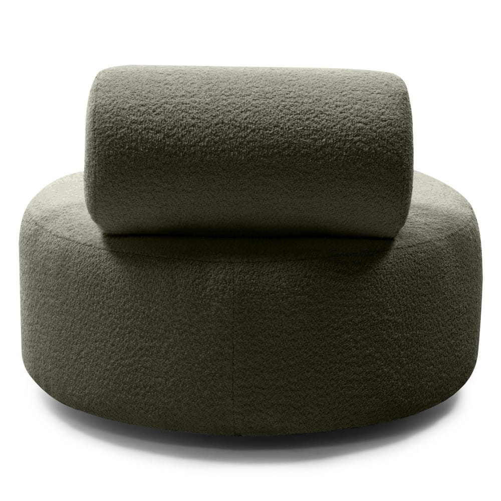 Fotel wypoczynkowy obrotowy MOSO z tkaniny boucle zielona oliwka