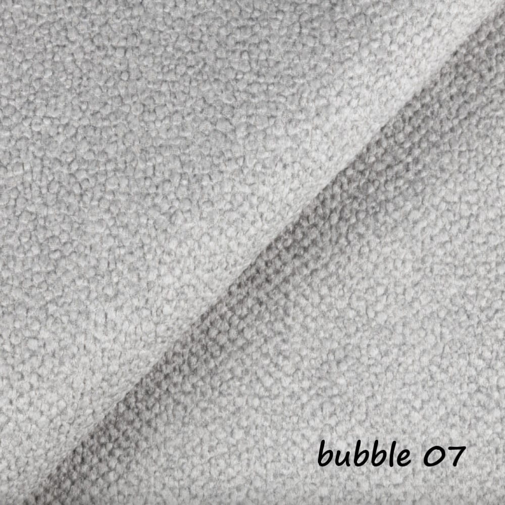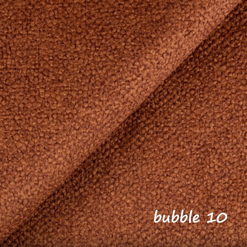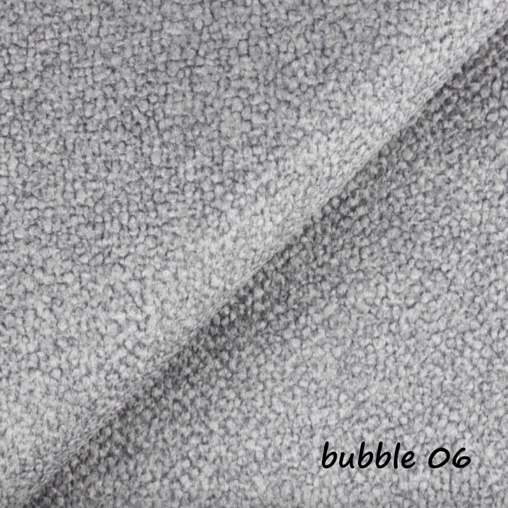 Welur BUBBLE to elegancka tkanina welurowa, która łączy wyjątkowy design z funkcjonalnością. Charakteryzuje się ciekawą, miękką strukturą. Dzięki bogatej palecie kolorów, BUBBLE świetnie komponuje się w różnych aranżacjach, dodając im wyrafinowanego charakteru. Z gramaturą 390 g/m², tkanina jest wystarczająco gruba, by zapewniać trwałość i odporność na uszkodzenia, a jednocześnie pozostaje miękka i przyjemna w dotyku. Test Martindale'a wykazał wyjątkową odporność na ścieranie, osiągając aż 100 000 cykli, co sprawia, że BUBBLE jest idealnym rozwiązaniem do mebli intensywnie użytkowanych. Tkanina została wzbogacona o innowacyjną powłokę WATER BLOCKED, która skutecznie chroni materiał przed wchłanianiem cieczy, co sprawia, że jest łatwa w utrzymaniu czystości i odporna na plamy. Co istotne, BUBBLE jest bezpieczna dla niemowląt, dzięki czemu stanowi doskonały wybór do przestrzeni, gdzie bezpieczeństwo i komfort są najważniejsze.