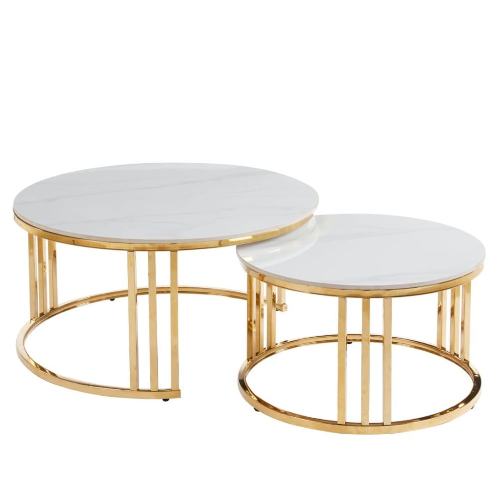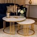 Komplet stolików kawowych AURELIA Duo – biały marmur i złoty połysk