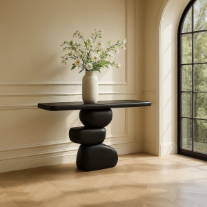 Głębszy blat daje więcej swobody aranżacyjnej: konsola sprawdzi się w salonie, za sofą, pod ścianą z obrazem lub jako subtelny element oddzielający strefy w otwartym wnętrzu.