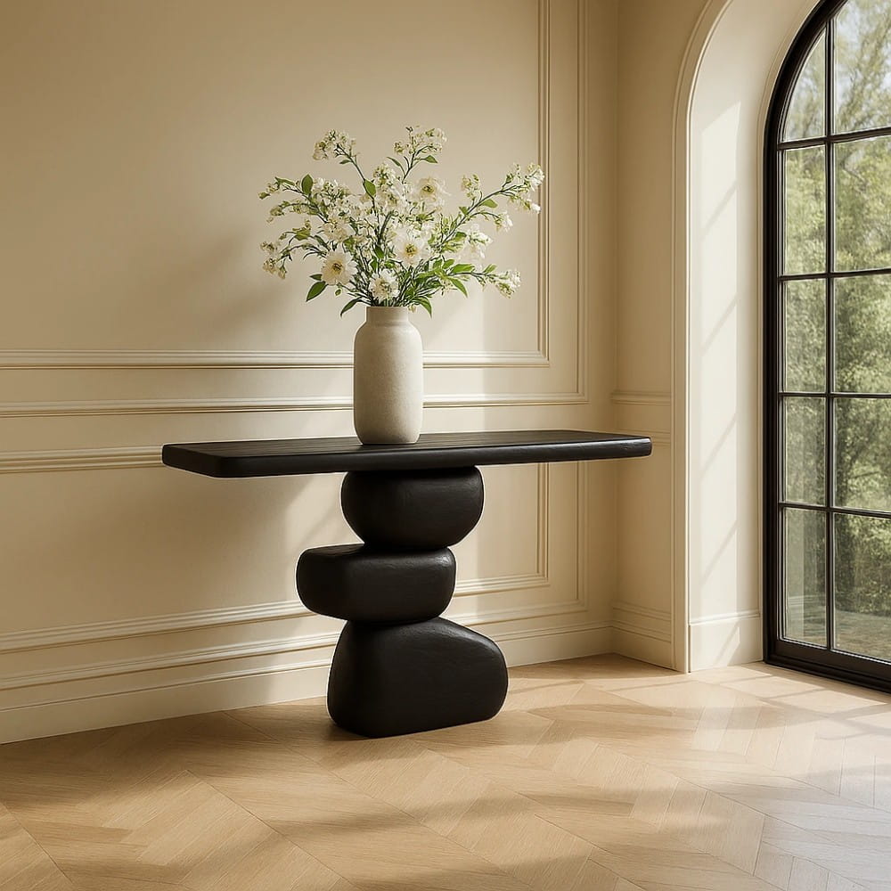 Rzeźbiarska forma wykonana z litego dębu sprawia, że konsola nie jest tylko dodatkiem do wnętrza, lecz jego świadomym elementem. Zen 120×40 doskonale sprawdza się pod lustrem, grafiką lub jako spokojny akcent w przestrzeniach premium.