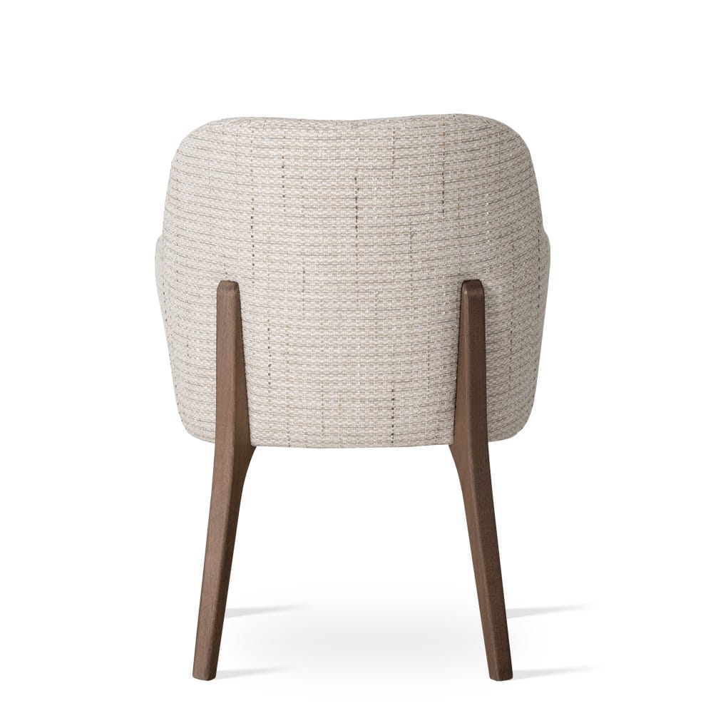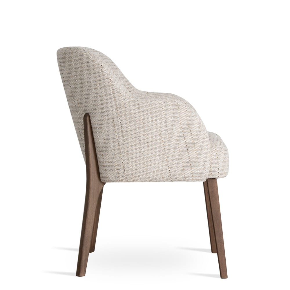 Krzesło osadzone jest na bukowym stelażu, dostępnym w wielu wariantach wybarwienia. Smukłe nogi i miękka linia oparcia tworzą spójną, nowoczesną bryłę w stylu modern classic.
