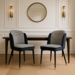 Wyprofilowane oparcie i sprężyste siedzisko gwarantują wygodę podczas długich spotkań przy stole. Strukturalna Salvador z powłoką WATER BLOCKED ułatwia codzienną pielęgnację, a smukłe czarne nogi metalowe dodają nowoczesnej elegancji. Produkcja lokalna pozwala dopasować wykończenia do Twojego wnętrza.