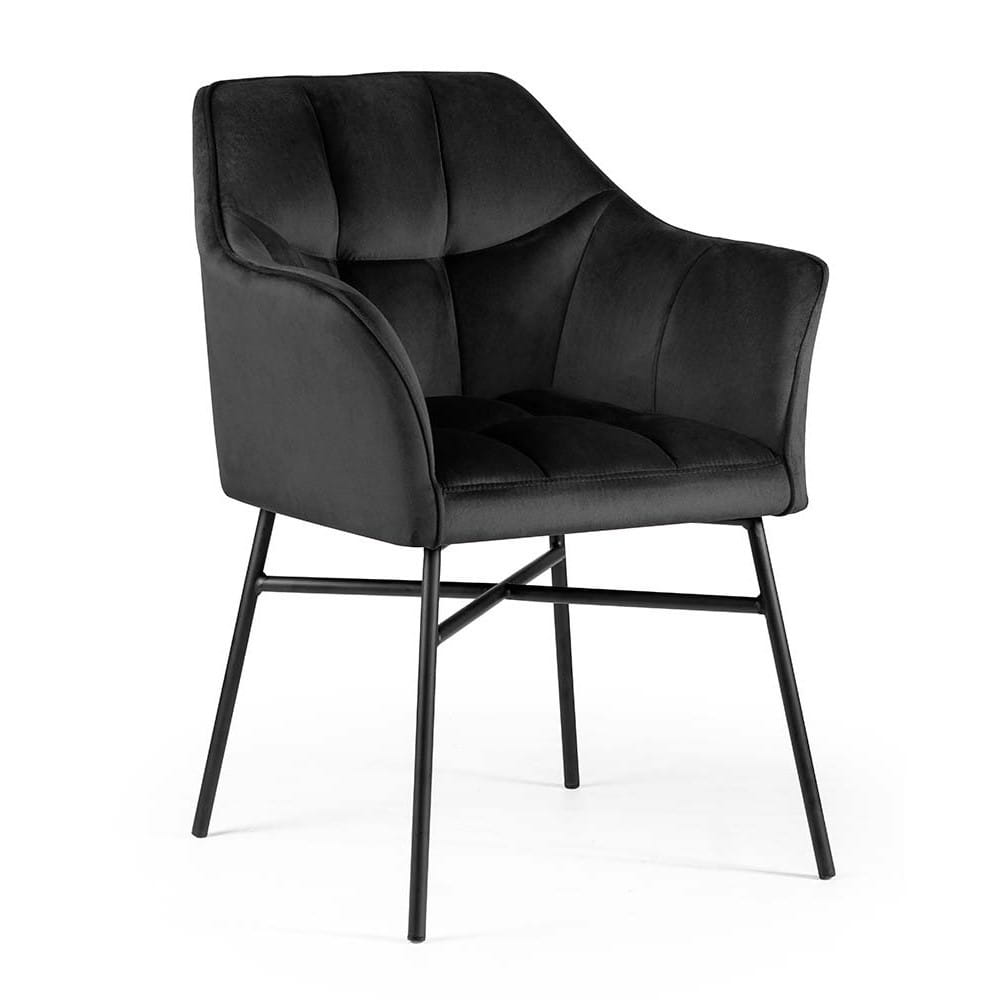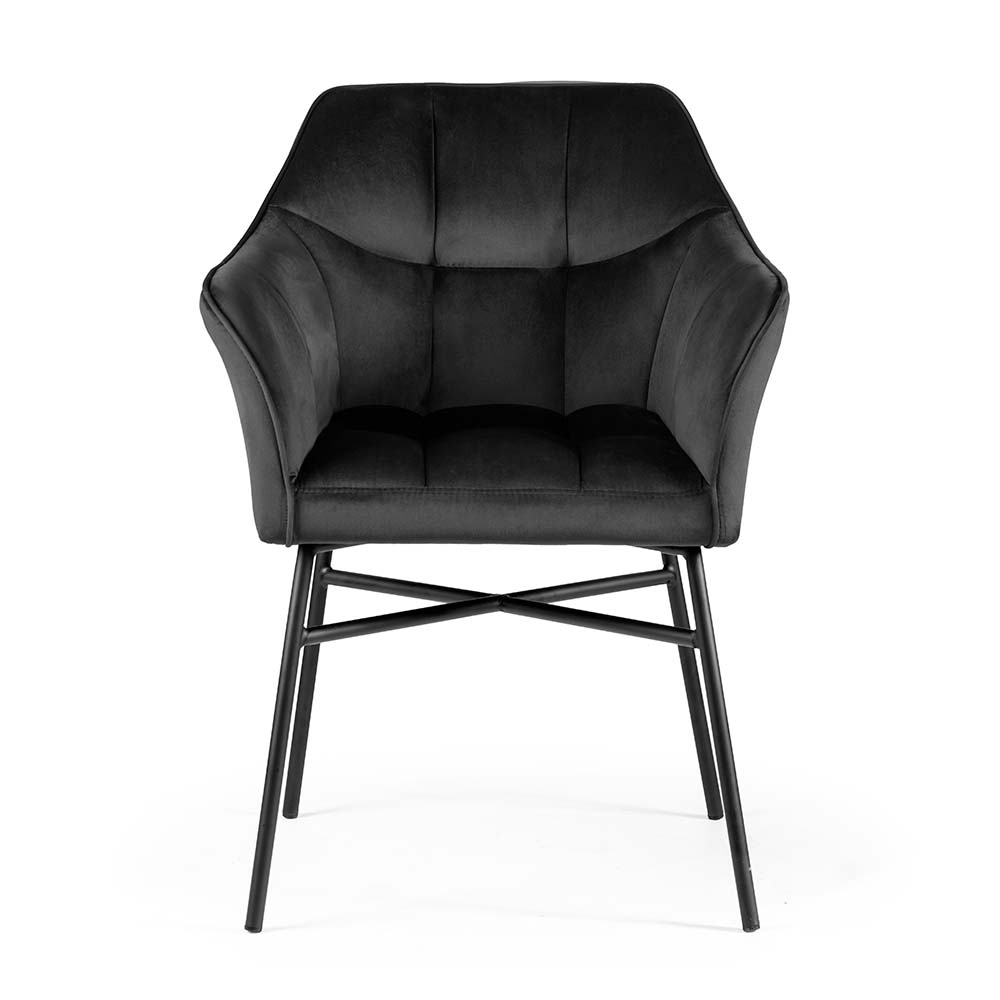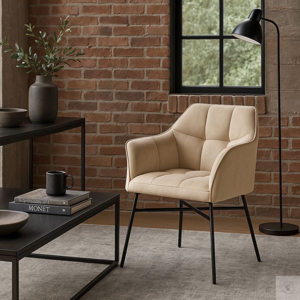 Gruba tkanina welurowa w połączeniu z miękkim siedziskiem i podłokietnikami tworzy komfort, który zostaje na dłużej. To model, który zachęca do pozostania przy stole.