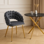 To krzesło, które łączy niezwykły design i wygodę. Szara tapicerka velvet nadaje mu subtelnej elegancji, a złote nogi sprawiają, że krzesło staje się wyrazistym elementem aranżacji. Idealne do wnętrz glamour, art deco, modern classic i wszędzie, gdzie liczy się styl i komfort.