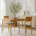 Krzesło ARIA to połączenie litego drewna dębowego z subtelnym minimalizmem. Wyróżnia je ergonomiczna linia oparcia, wygodne tapicerowane siedzisko oraz wykończenie podkreślające naturalny rysunek słojów. Idealne do jadalni, restauracji i wnętrz inspirowanych naturą – w stylu japandi i modern organic. Każdy egzemplarz wykonywany jest z dbałością o detal w polskiej manufakturze.
