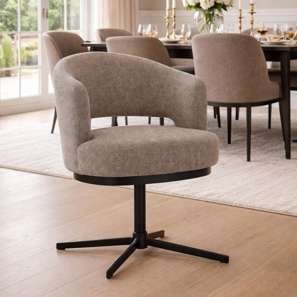 Krzesło HAGA Small Cross to wygodne, obrotowe krzesło tapicerowane zaprojektowane z myślą o nowoczesnych jadalniach i domowych przestrzeniach pracy. Siedzisko oparte na sprężynach kieszeniowych i piance HR zapewnia sprężyste, komfortowe podparcie nawet podczas długiego siedzenia. Metalowa podstawa typu cross nadaje bryle lekkości i nowoczesnego charakteru.