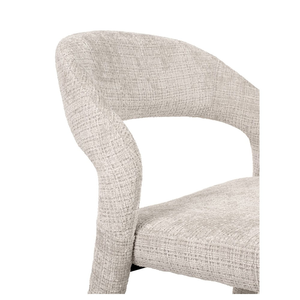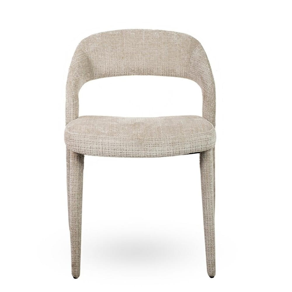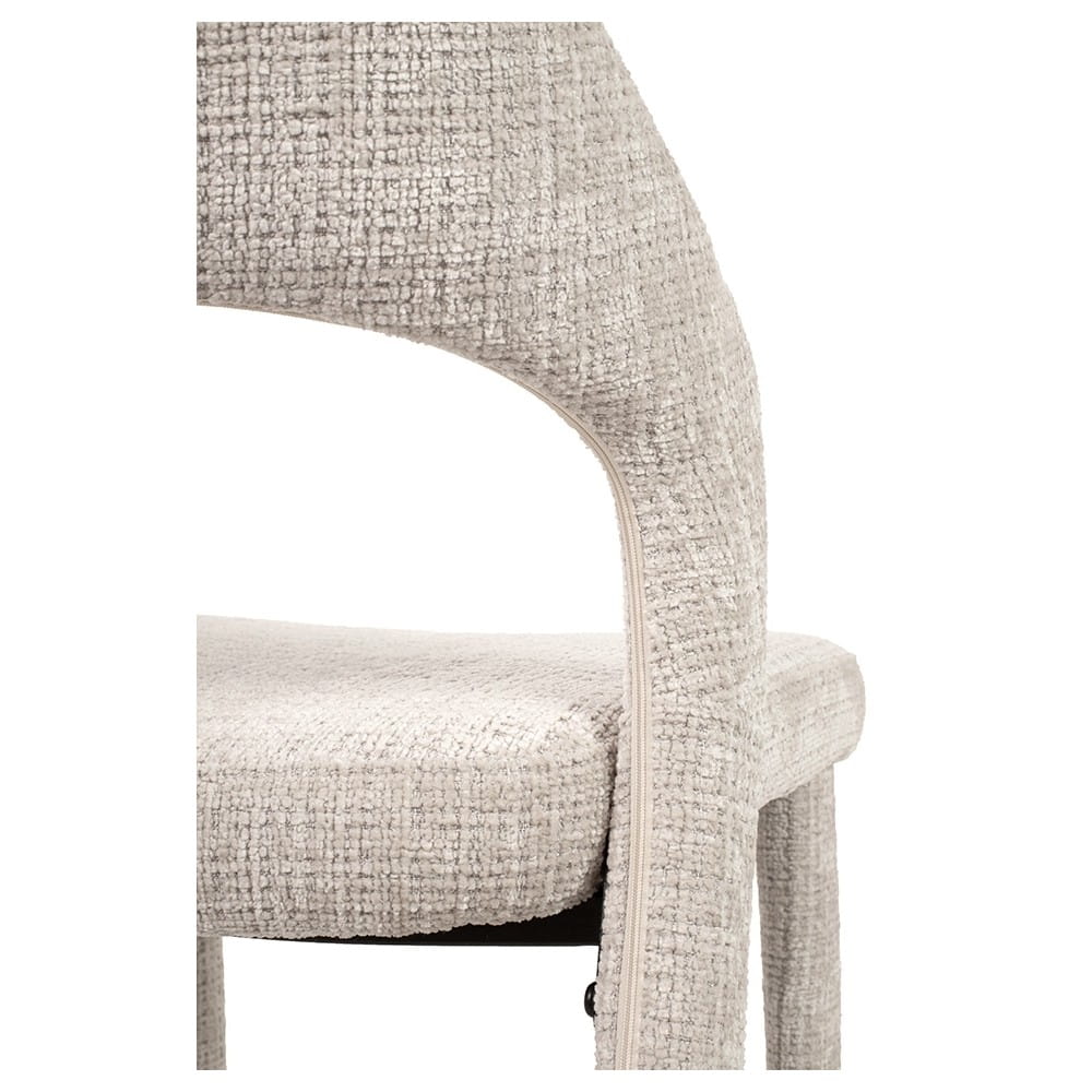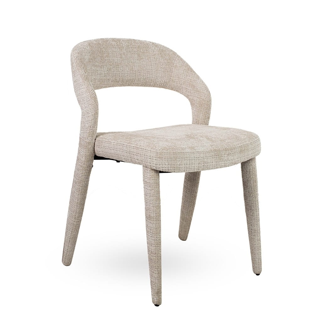 Nowoczesne krzesło KOS w całości tapicerowane szenilową tkaniną Davis Cremona 2 w beżowym kolorze. Minimalistyczna forma i elegancja w jednym.