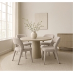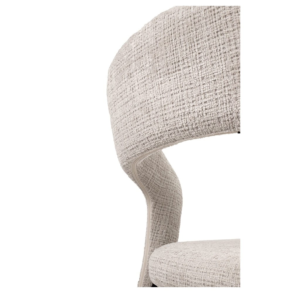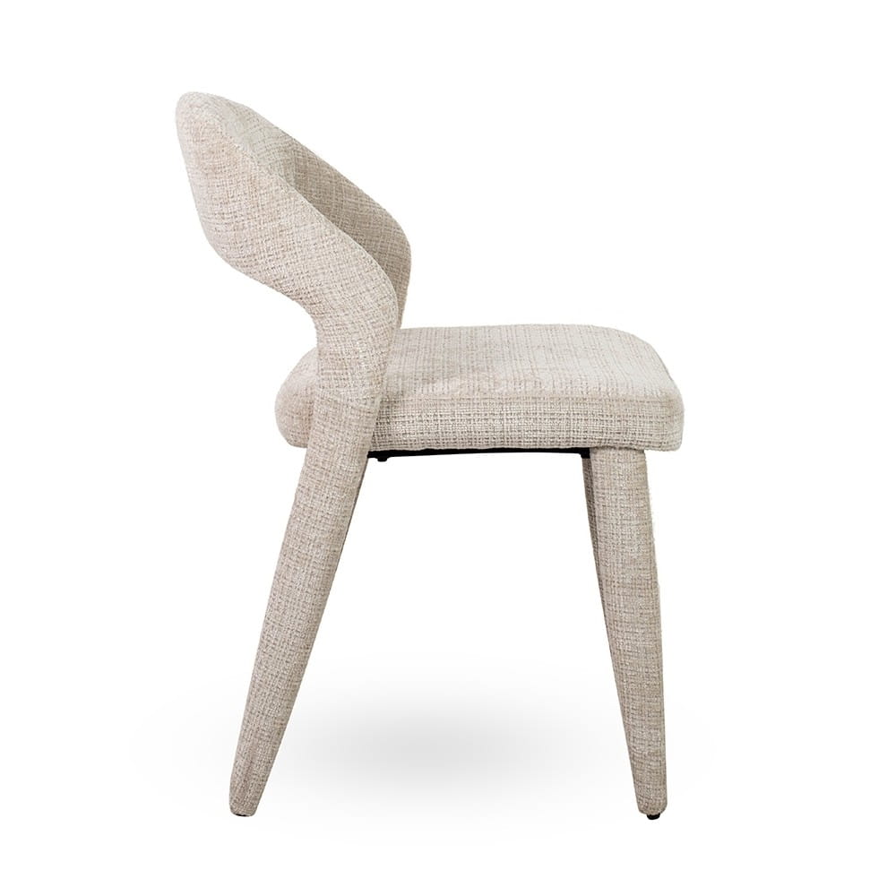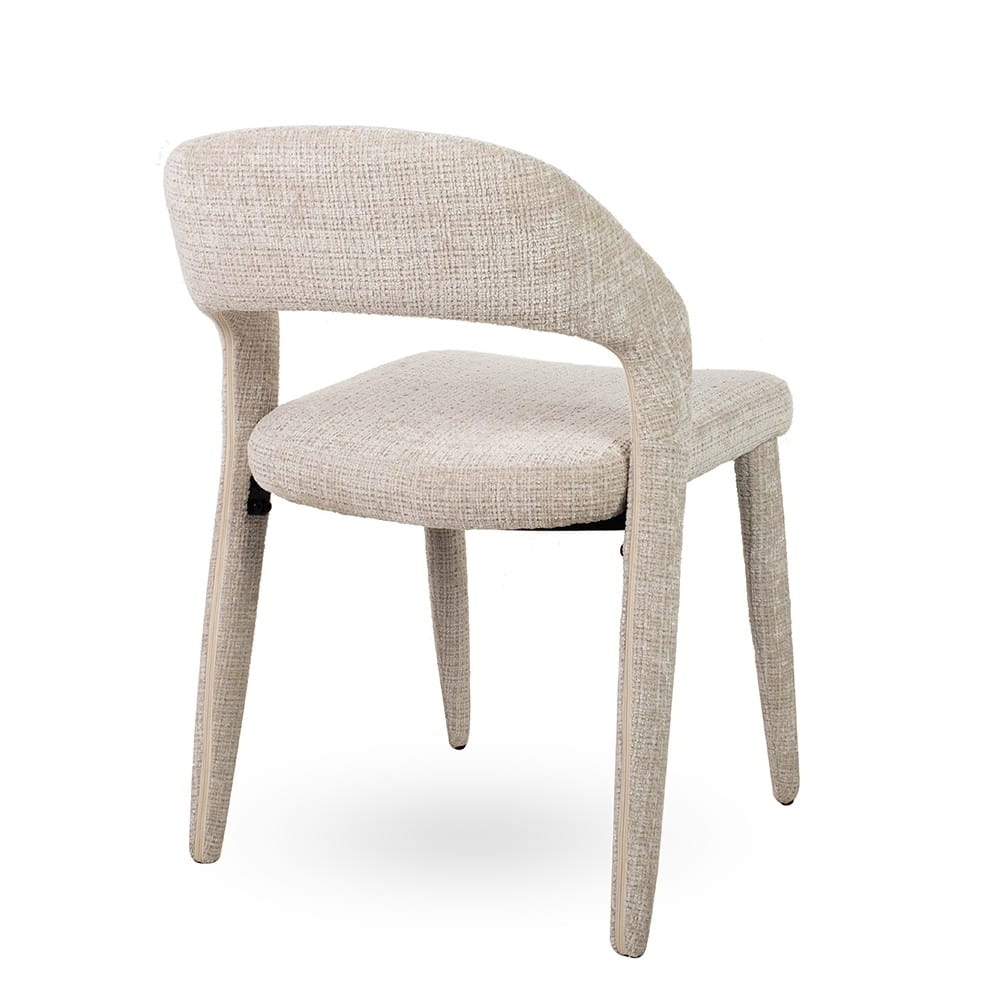 Minimalistyczna sylwetka z charakterystycznie wyprofilowanym oparciem dodaje krzesłu lekkości, a jednocześnie zapewnia ergonomiczne podparcie pleców. To doskonałe rozwiązanie do nowoczesnych jadalni, salonów oraz wnętrz utrzymanych w stylu skandynawskim, japandi czy soft loft.