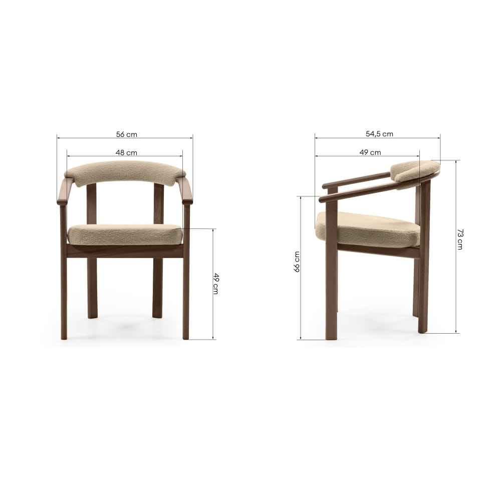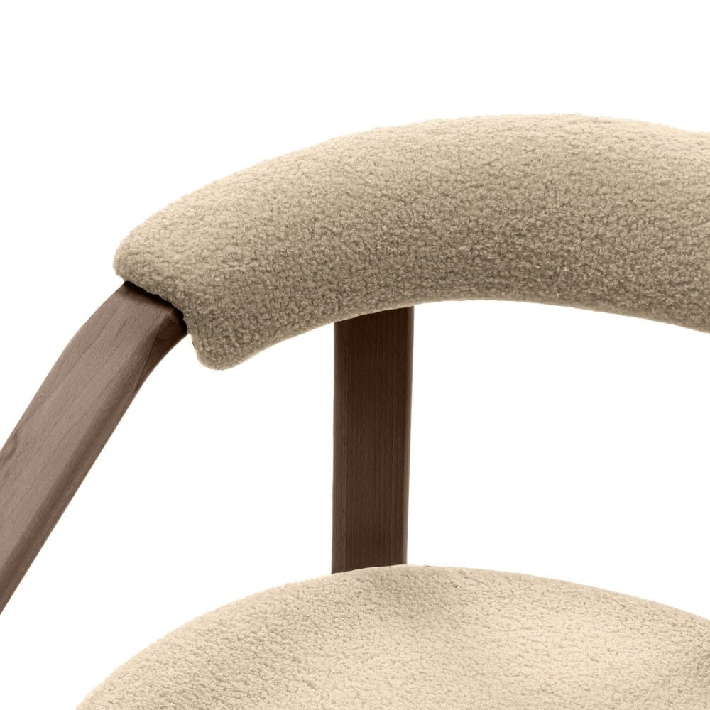 Tapicerowane siedzisko i oparcie pokryto tkaniną boucle Lambi 10 w odcieniu ciepłego beżu. Strukturalny materiał nie tylko pięknie wygląda, ale jest również przyjemny w dotyku i praktyczny w użytkowaniu.