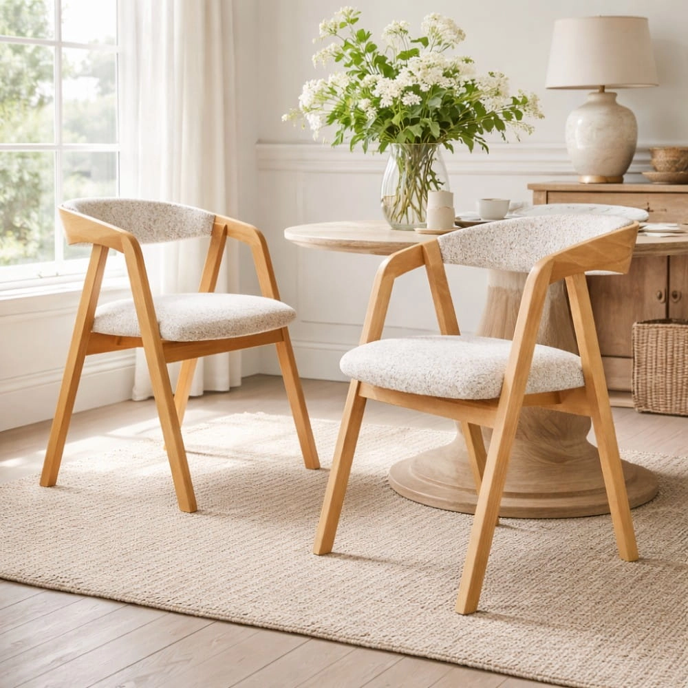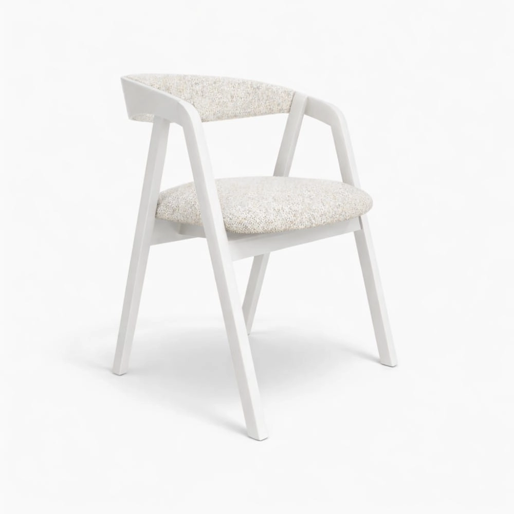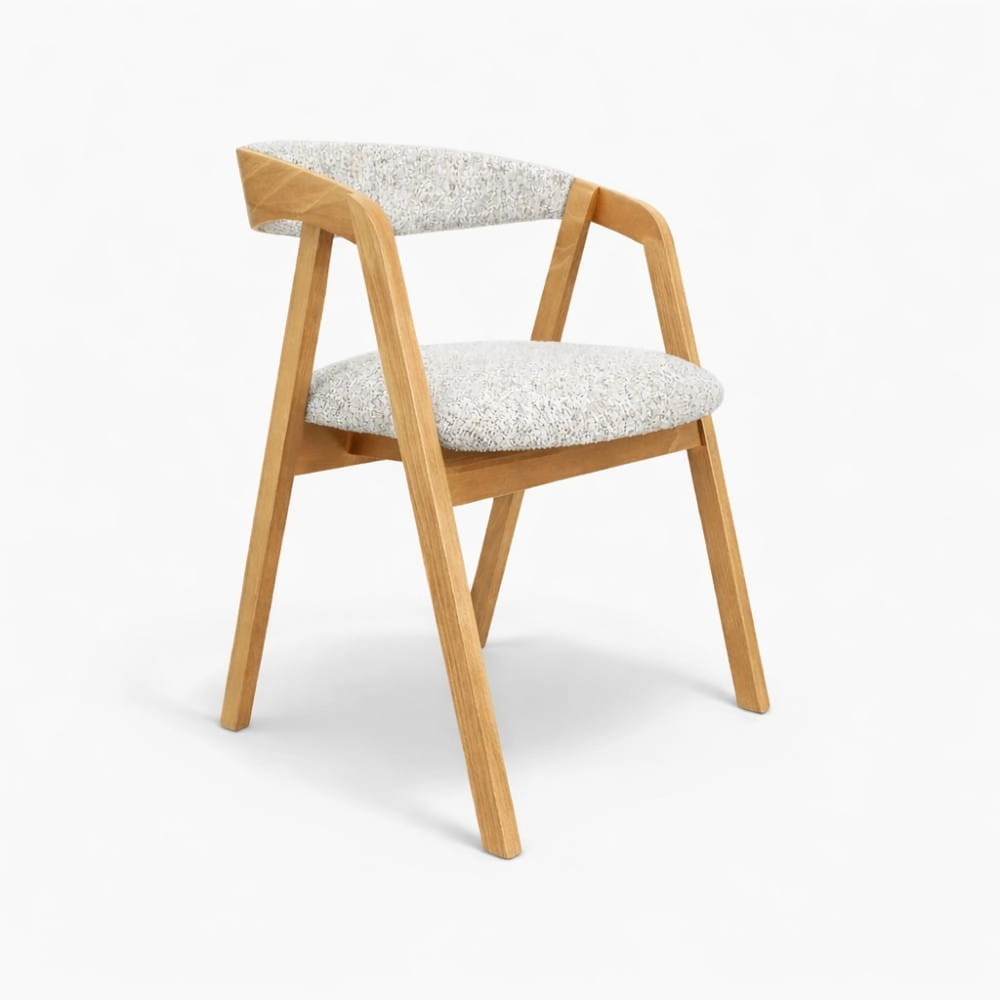 Krzesło Mila to połączenie naturalnego drewna z miękkim komfortem tapicerki. Prosta forma i subtelne podłokietniki sprawiają, że model dobrze wpisuje się w różne aranżacje. To krzesło, które daje wygodę w codziennym użytkowaniu i jednocześnie utrzymuje lekkość wizualną całej przestrzeni.