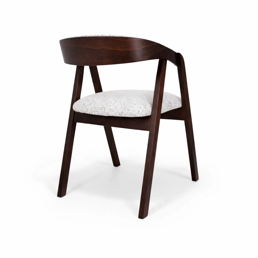 Mila to krzesło, które łączy miękkość tapicerki z naturalnym charakterem drewna. Dzięki temu tworzy spójną i spokojną przestrzeń przy stole.