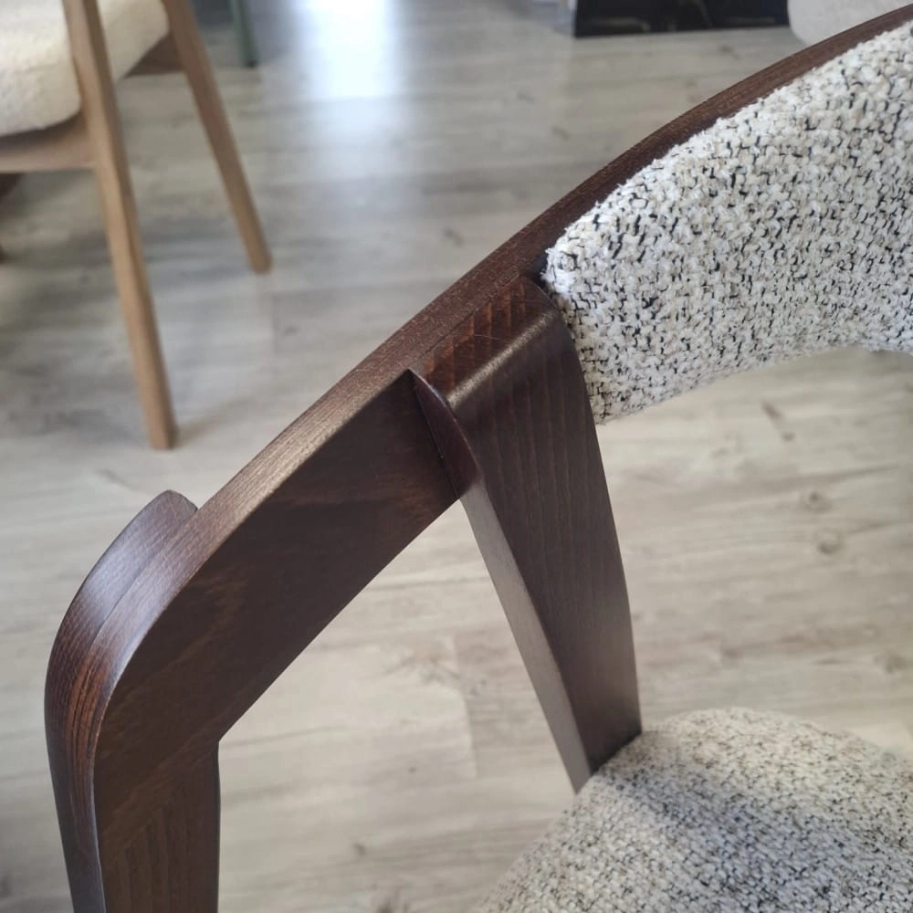 Krzesło MILA – drewniane krzesło tapicerowane z podłokietnikami, tkanina Puente