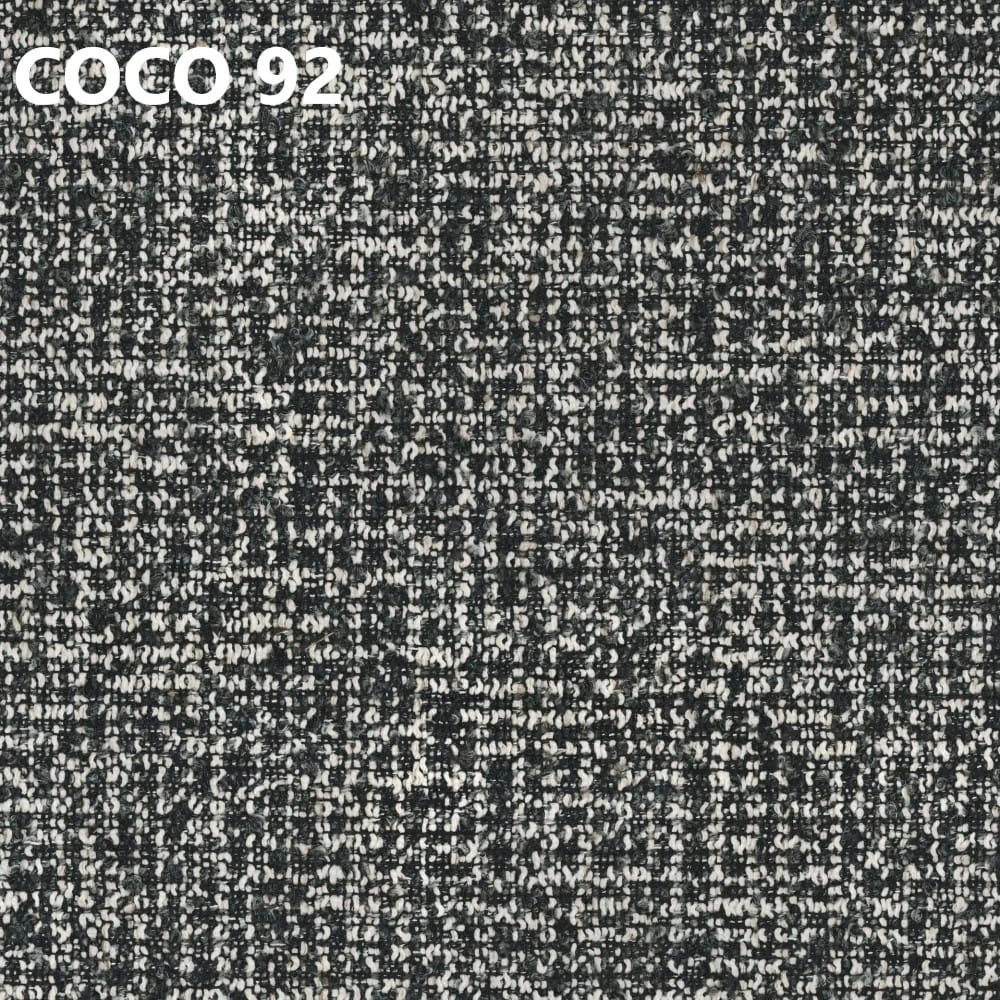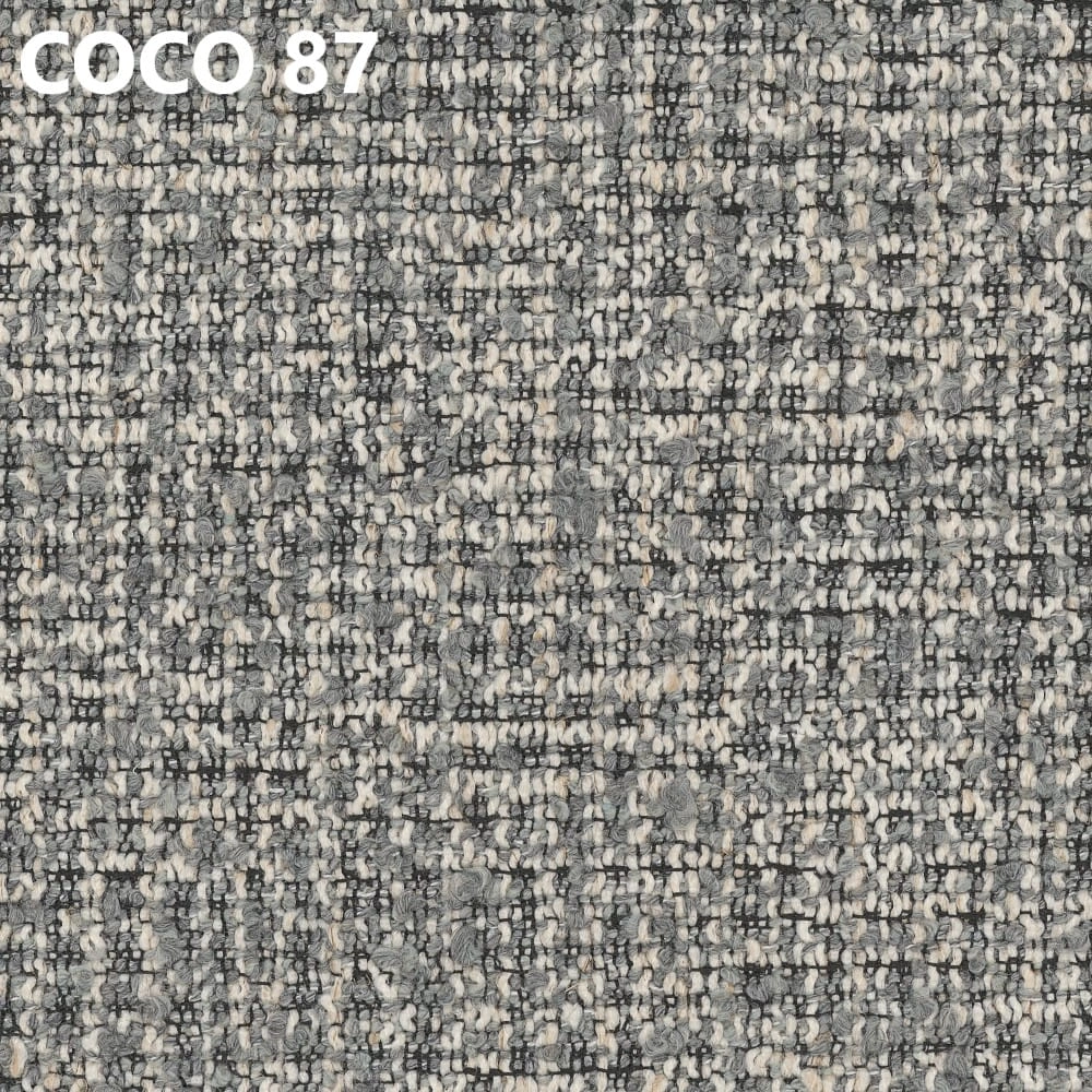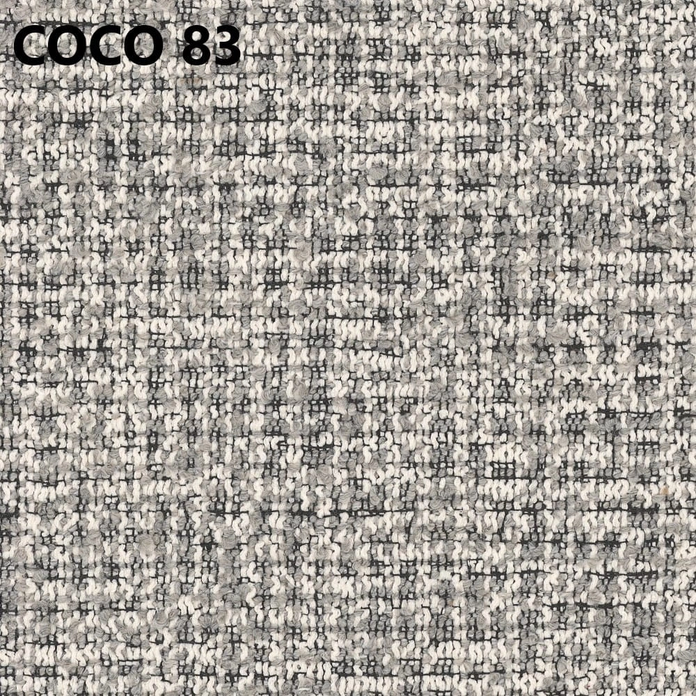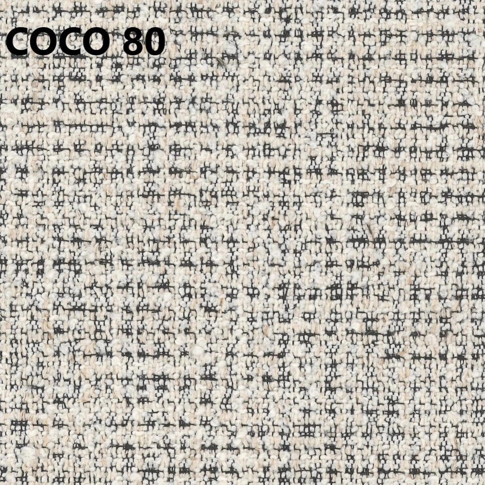 Tkanina Coco to wyrazista struktura o charakterze premium, która podkreśla bryłę krzesła i nadaje wnętrzu bardziej designerski klimat. Jest przyjemna w dotyku i dobrze sprawdza się w codziennym użytkowaniu.
