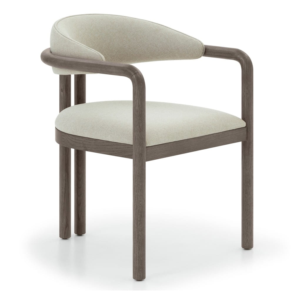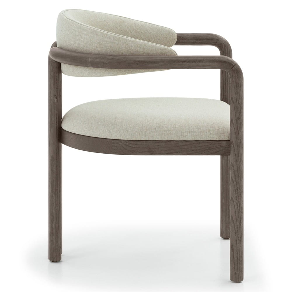 Ergonomicznie wyprofilowane oparcie i wygodne siedzisko zapewniają komfort zarówno przy stole, jak i w strefie wypoczynkowej. Detale konstrukcyjne – zaokrąglone podłokietniki, pełne oparcie i stabilne nogi – tworzą całość dopracowaną w każdym calu.