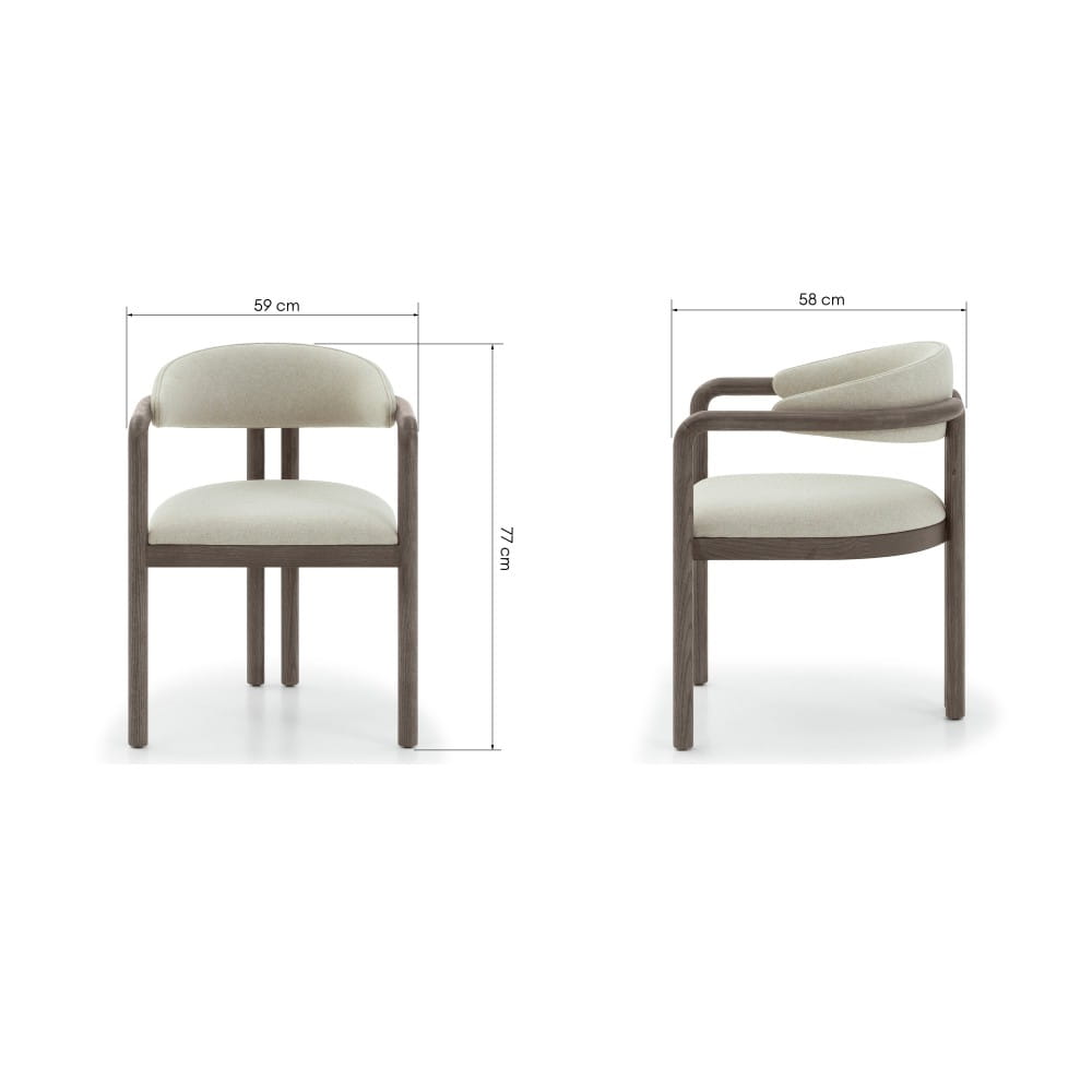 PALENA to nowoczesne krzesło, które przyciąga uwagę wyrafinowaną formą i naturalnym materiałem. Konstrukcja wykonana z litego drewna dębowego w głębokim, szlachetnym odcieniu espresso harmonijnie łączy się z tapicerką w ciepłym beżowym tonie.