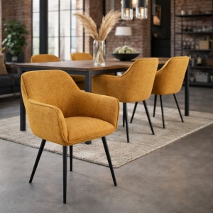 Krzesło Rimo to połączenie lekkiej, nowoczesnej formy z komfortem podłokietników. Otulające oparcie i miękka linia sprawiają, że siedzenie staje się naturalnie wygodne i swobodne. To model, który dobrze odnajduje się w jadalni i przestrzeniach spotkań, gdzie liczy się wygoda, proporcja i estetyka.
