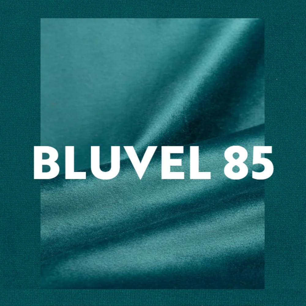 Tkanina Bluvel to elegancki welur o delikatnym połysku, który zmienia odcień w zależności od światła i podkreśla luksusowy charakter wnętrza.
