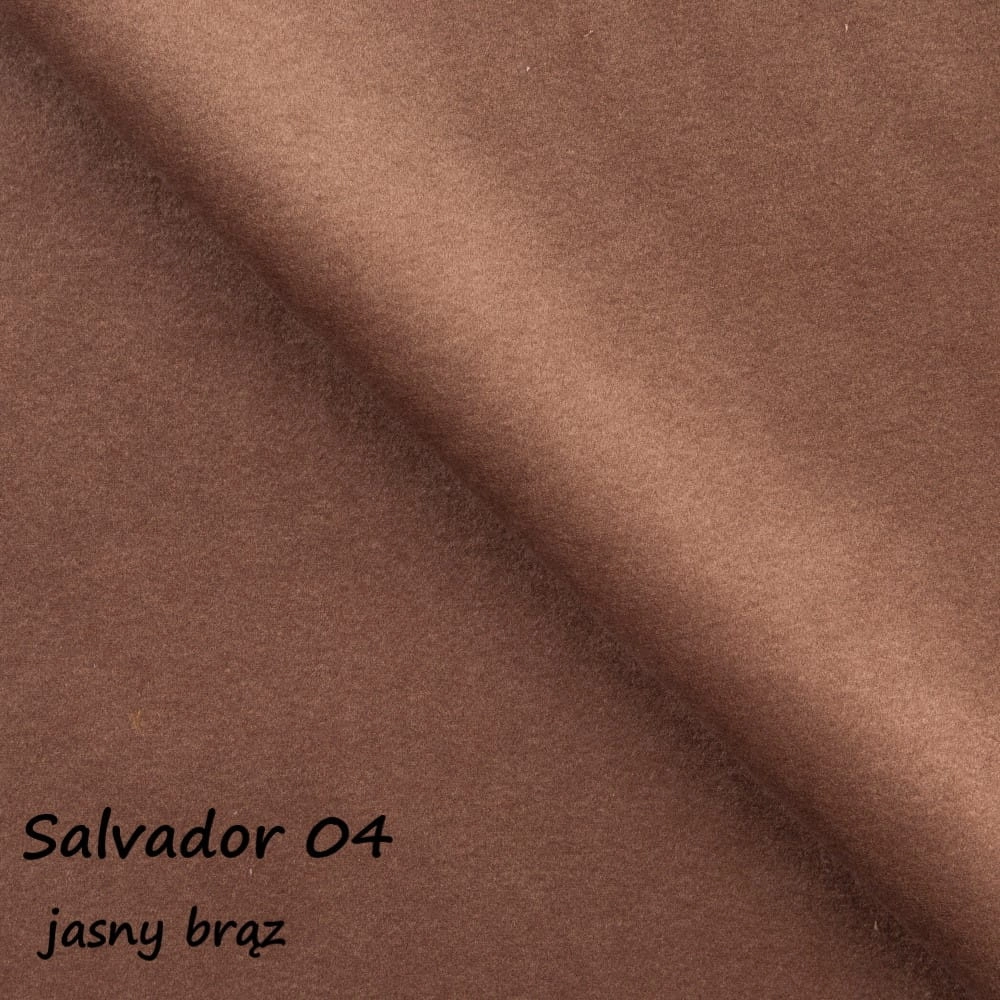 Tkanina Salvador to wytrzymały welur o wysokiej gramaturze i odporności na ścieranie, przekraczającej 130 000 cykli. Zapewnia elegancki wygląd i trwałość nawet przy intensywnym użytkowaniu.