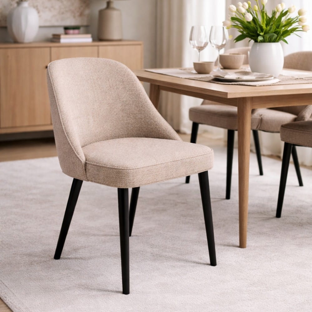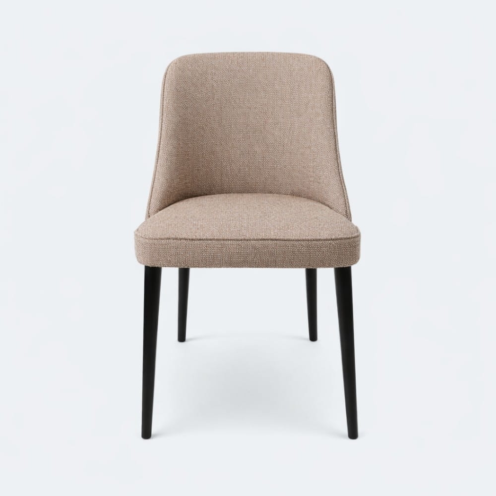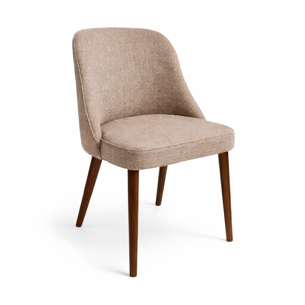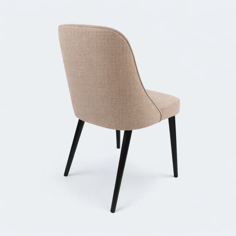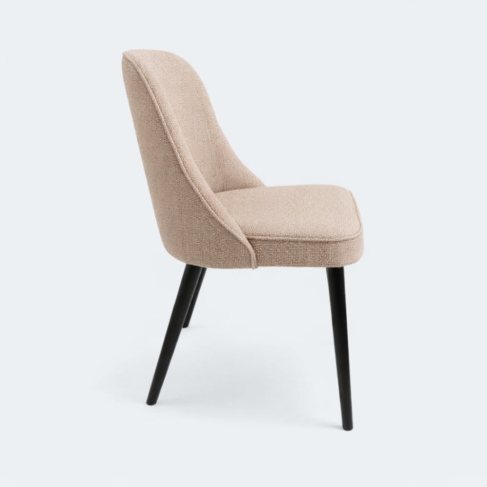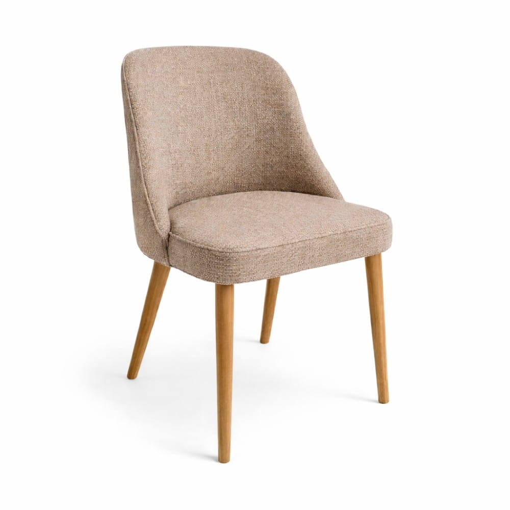 Krzesło tapicerowane Nola, lekka forma i naturalne drewniane nogi