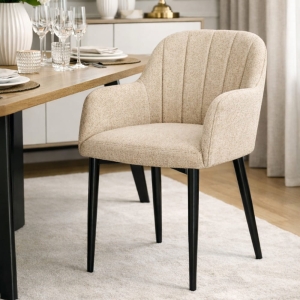 Krzesło TULIP z podłokietnikami w tkaninie DREAM to komfortowy model zaprojektowany do eleganckich jadalni i dużych stołów. Ergonomiczna forma, miękkie siedzisko z pianki oraz smukłe metalowe nogi zapewniają wygodę codziennego użytkowania oraz ponadczasową estetykę. polska produkcja na zamówienie z możliwością pełnej personalizacji.