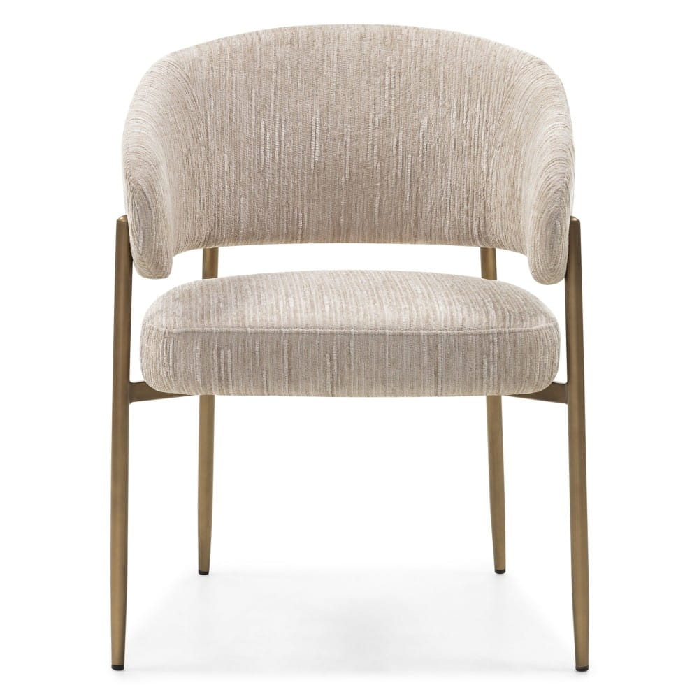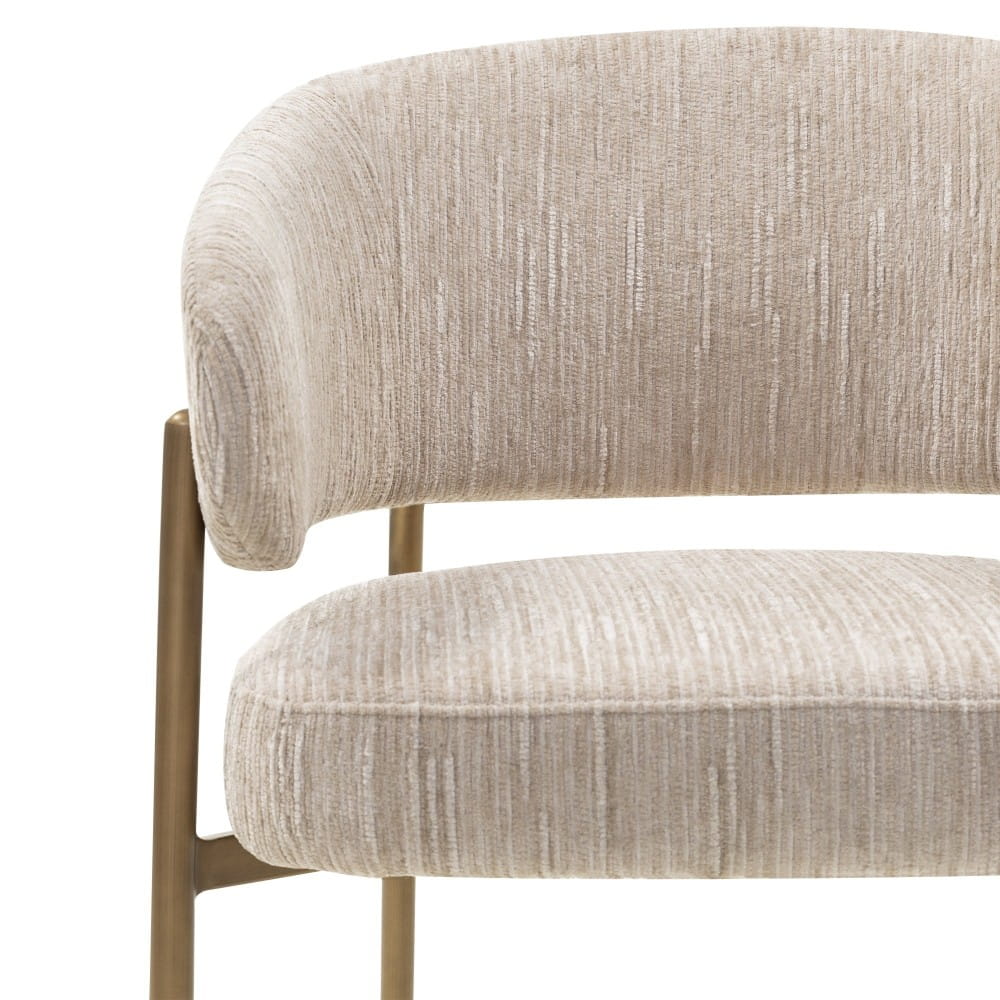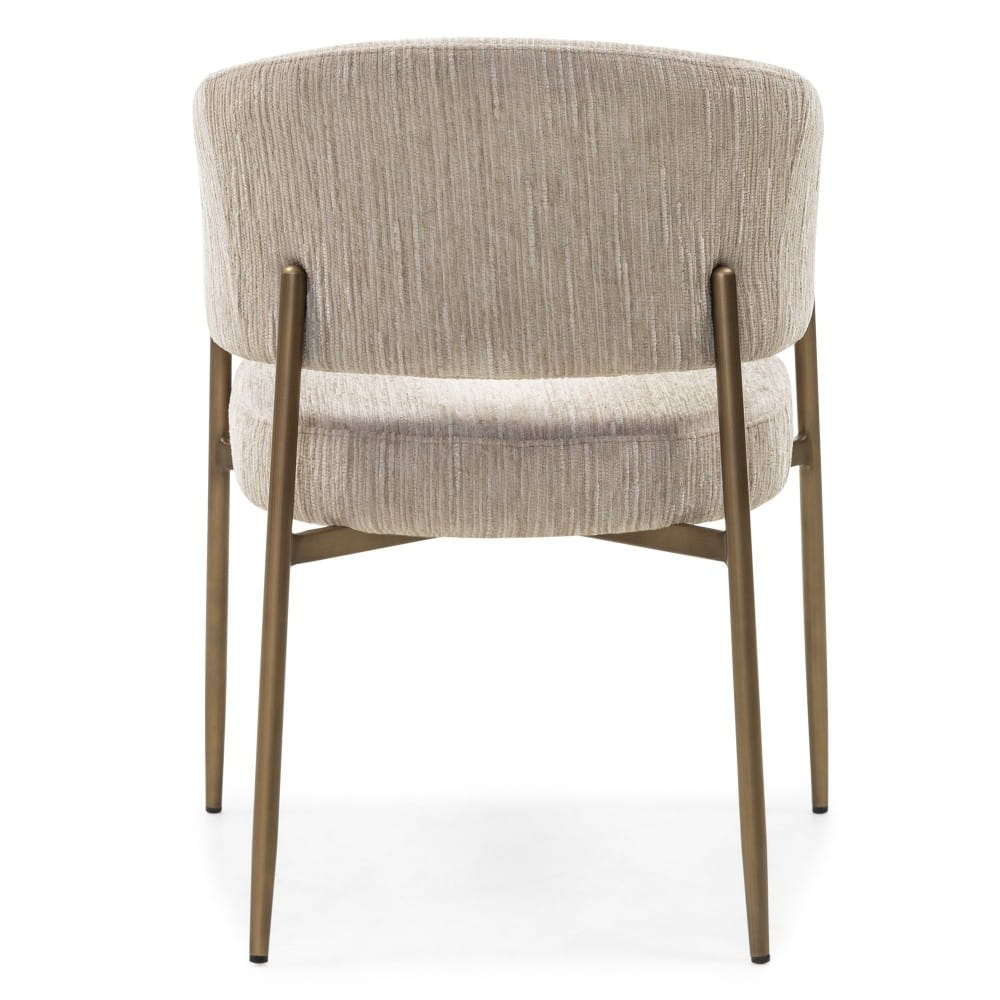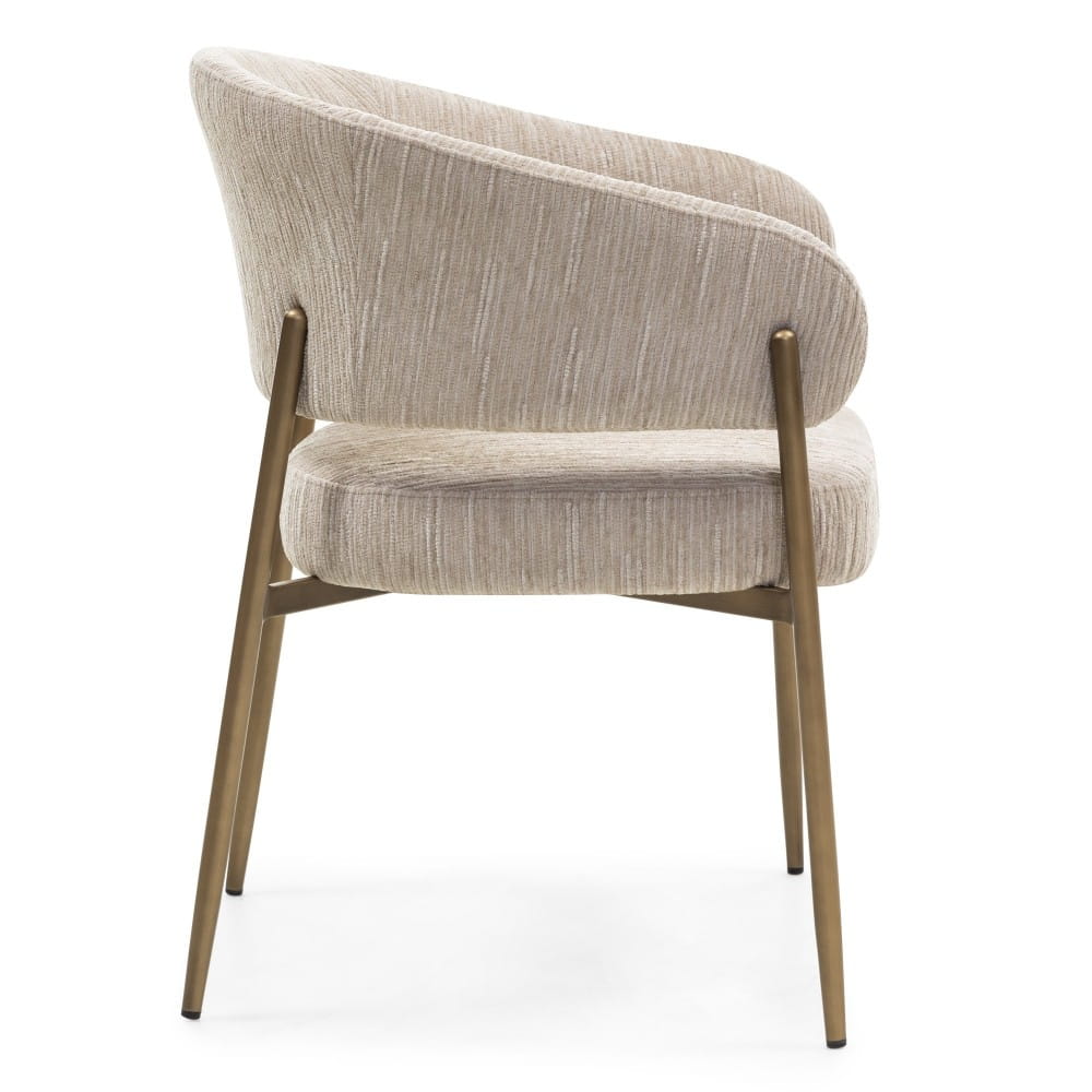 Krzesło UMBRA to kwintesencja elegancji w nowoczesnym wydaniu. Beżowa tapicerka, smukła konstrukcja w kolorze mosiądzu i komfortowe siedzisko czynią z niego doskonały wybór do jadalni, salonu czy wnętrz glamour.