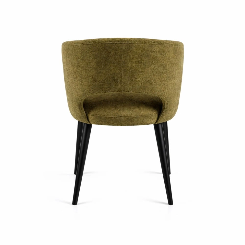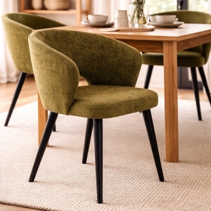 Zaokrąglona forma oparcia sprawia, że krzesło wygodnie podpiera plecy, a podłokietniki zapewniają dodatkowe podparcie podczas siedzenia przy stole.