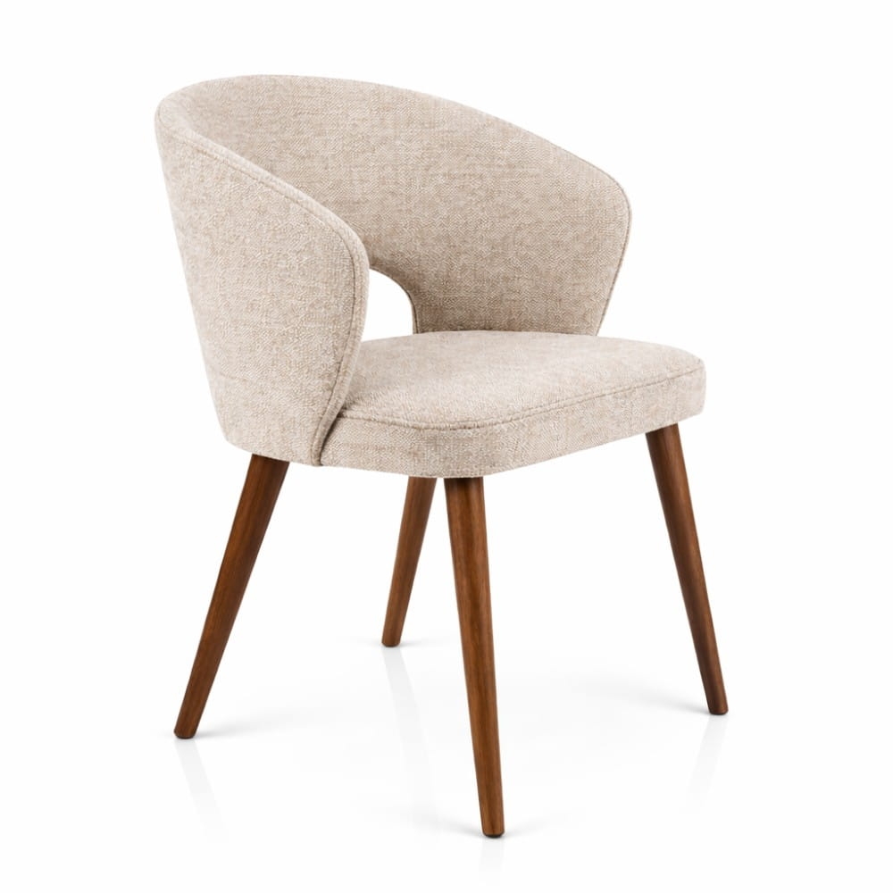 Krzesło VENTO to eleganckie krzesło tapicerowane z podłokietnikami zaprojektowane z myślą o wygodnej jadalni. Zaokrąglone oparcie płynnie przechodzi w podłokietniki, tworząc komfortową formę siedziska inspirowaną fotelami jadalnianymi. Konstrukcja oraz nogi wykonane są z drewna bukowego, co zapewnia stabilność i trwałość podczas codziennego użytkowania. Krzesło powstaje w Polsce w standardzie polska produkcja premium.
