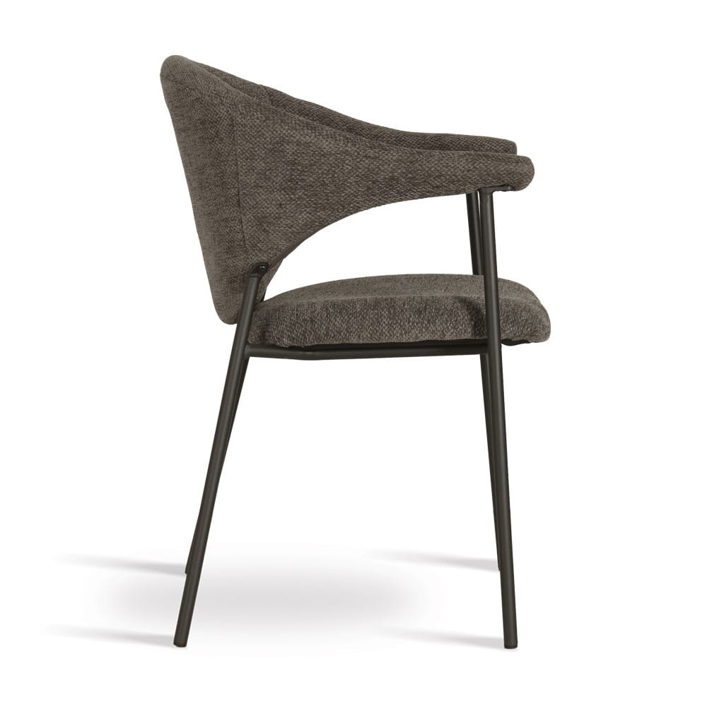 Krzesło NOTI to połączenie stylu, komfortu i solidnego wykonania. Tapicerowane siedzisko i ergonomiczne podłokietniki zapewniają wygodę, a elegancki czarny metalowy stelaż dodaje nowoczesnego charakteru i stabilności.