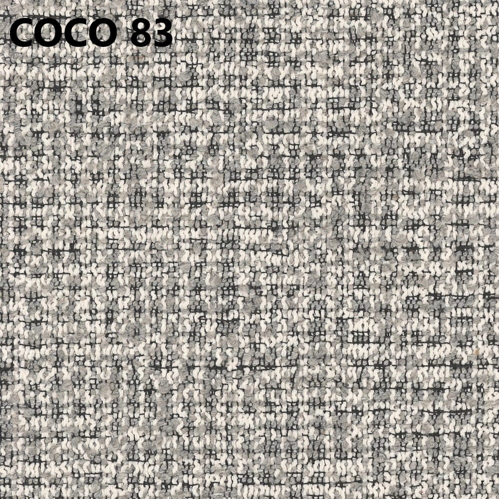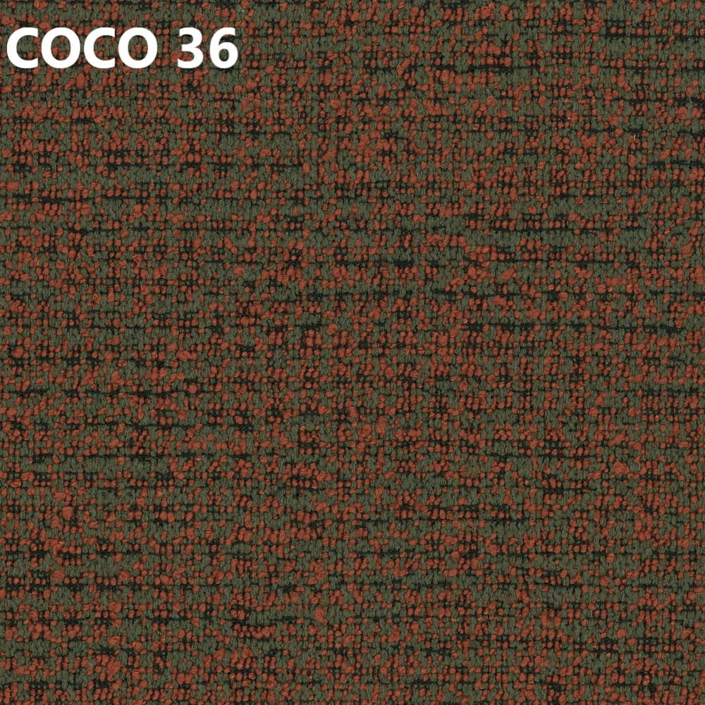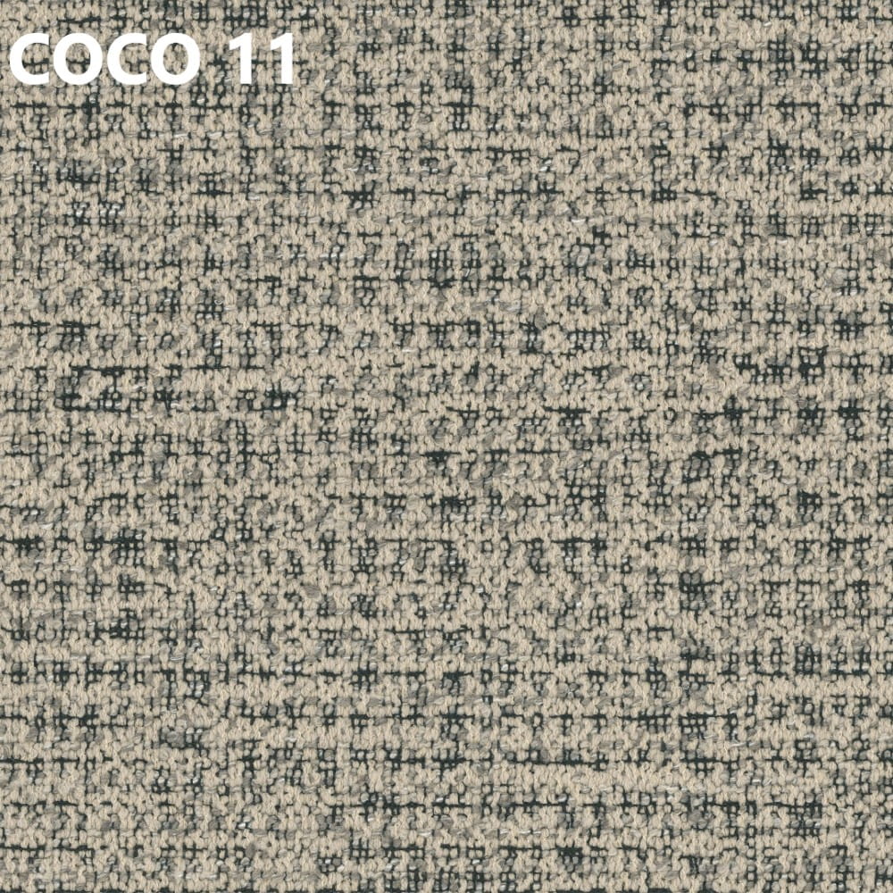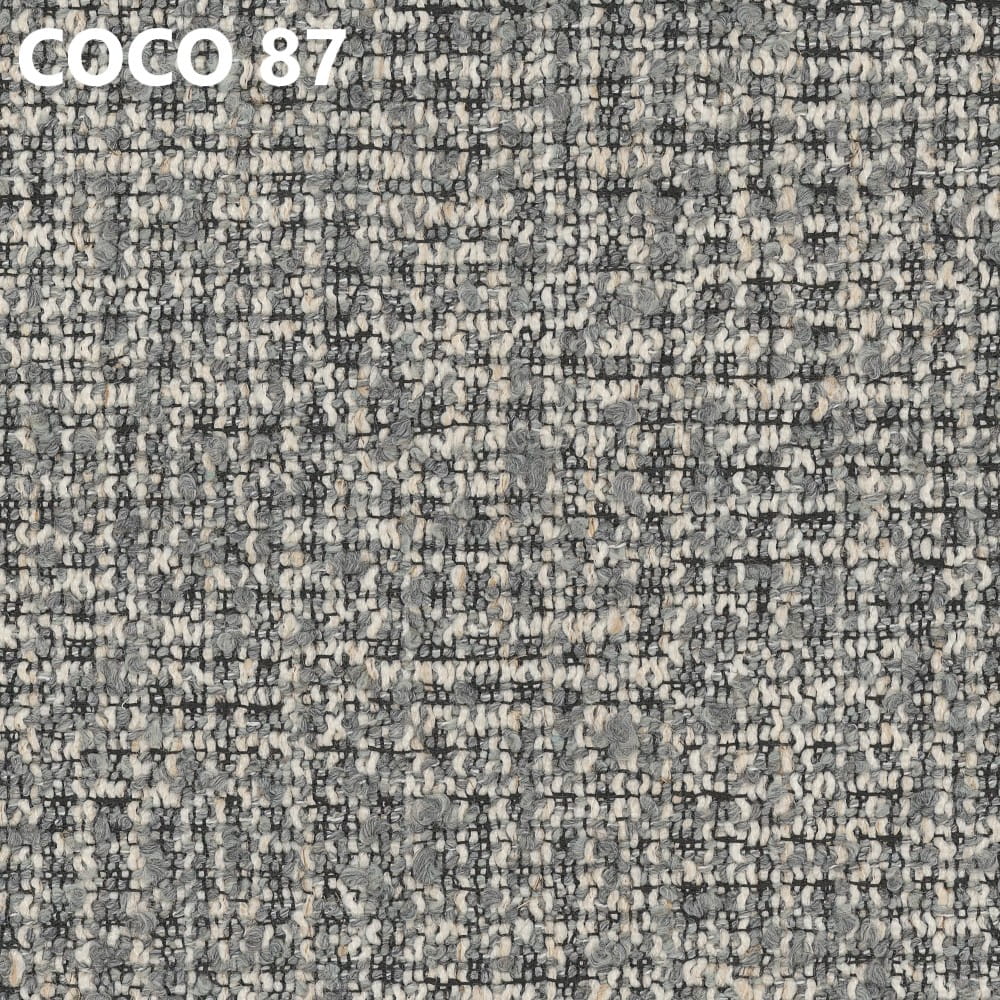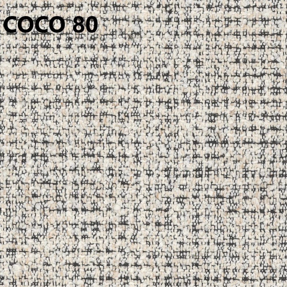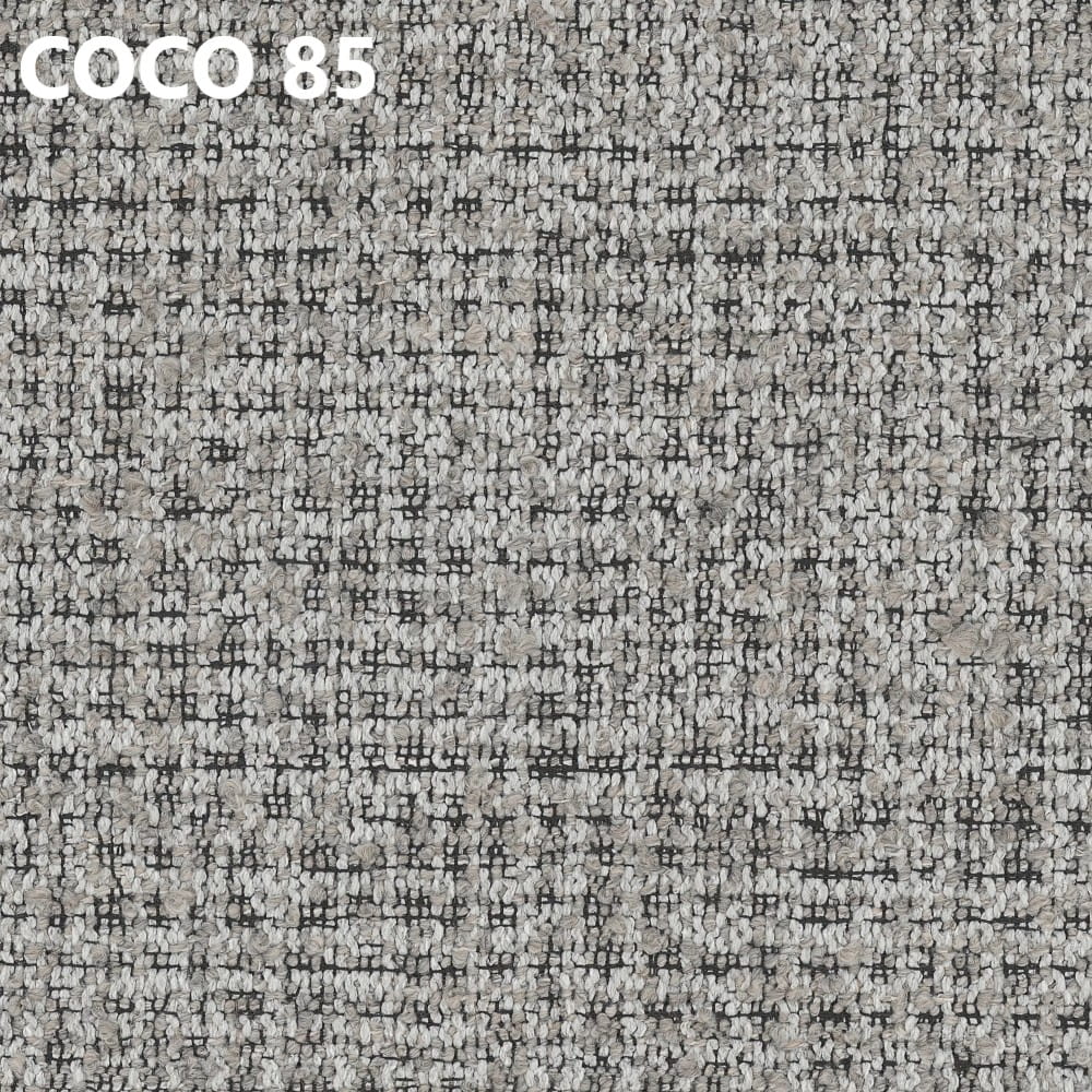 Tkanina Coco wyróżnia się wyraźnym, melanżowym splotem, który nadaje wnętrzu głębi i przytulnego charakteru. Jest trwała i odporna na codzienne użytkowanie.