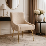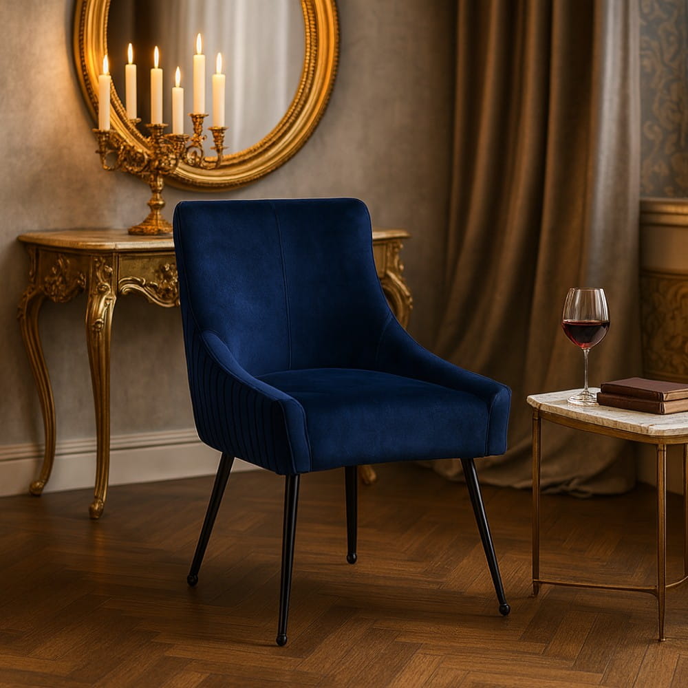 Sizar Lux to eleganckie krzesło z wysokim oparciem, wykonane z drewnianego stelaża oraz stalowych nóg. Tapicerowane tkaniną Salvador – gęstym, matowym welurem WATER BLOCKED o wysokiej odporności. Wygodne, stabilne i stworzone z myślą o nowoczesnych wnętrzach.
