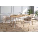 Stół ANGELO to funkcjonalne połączenie nowoczesnego designu z ciepłym wybarwieniem drewna. Okrągły, rozkładany blat i solidne metalowe nogi sprawiają, że to idealny wybór do każdej jadalni.