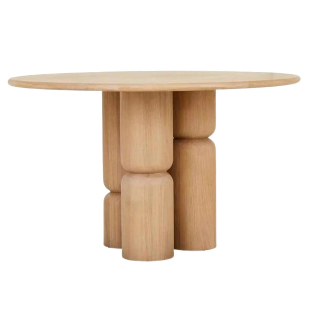 PILLAR — okrągły stół z litego dębu z rzeźbiarską, geometryczną podstawą