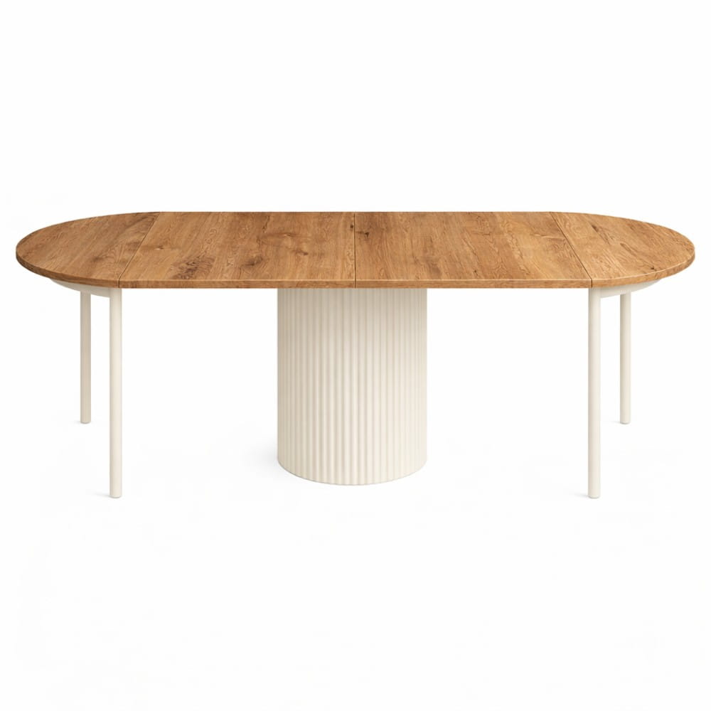 Okrągły stół rozkładany DIONE Cashmere – ryflowana podstawa RAL 9002