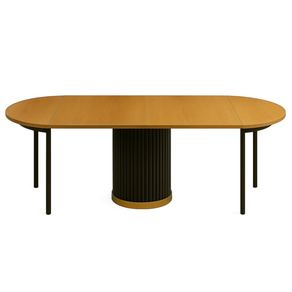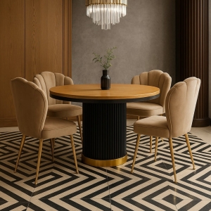Dzięki prostym liniom i naturalnemu fornirowi, stół Dione odnajduje się zarówno we wnętrzach nowoczesnych, jak i tych inspirowanych klasyką. Czarny detal bazy dodaje subtelnego kontrastu, jednocześnie zachowując spójność estetyczną całego mebla.