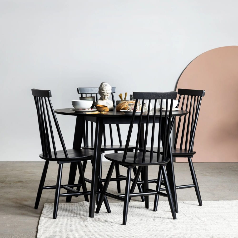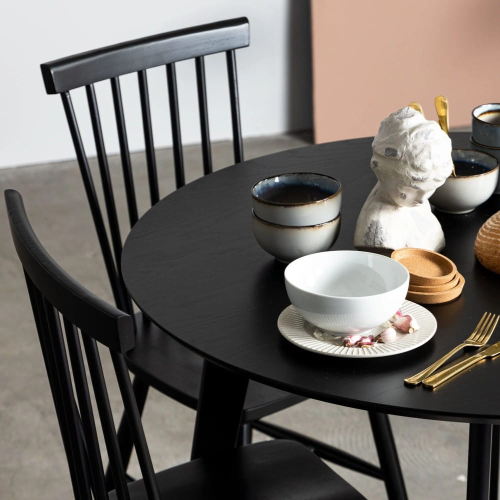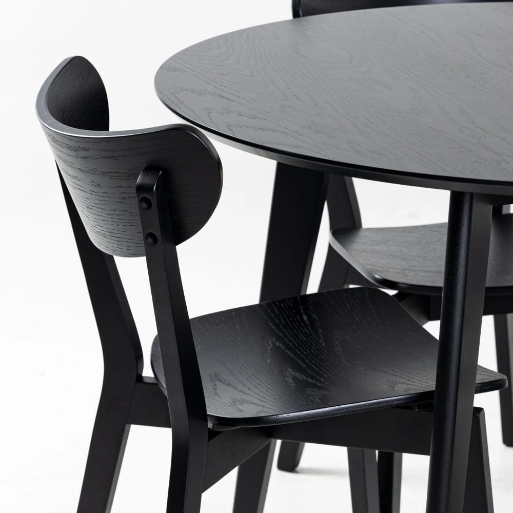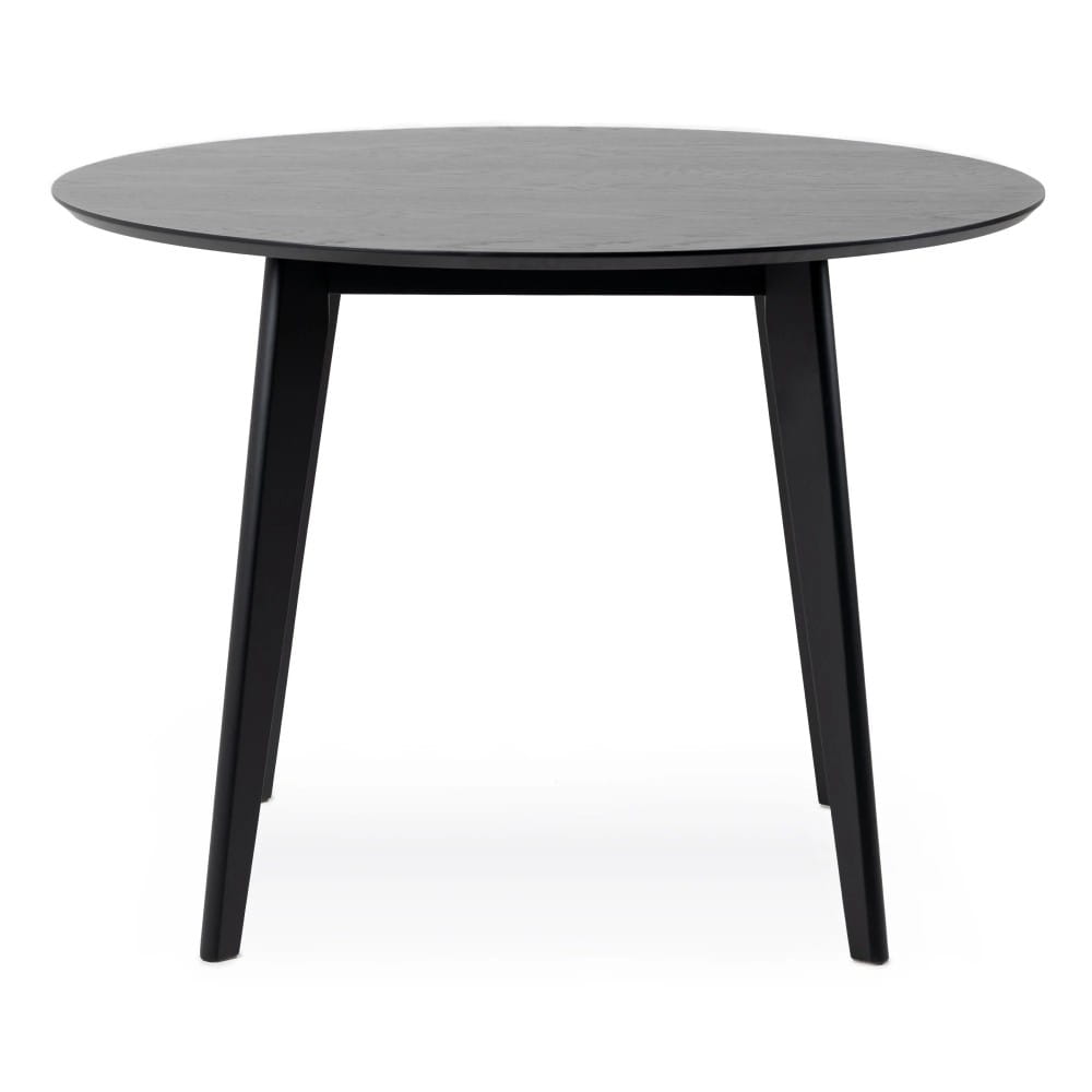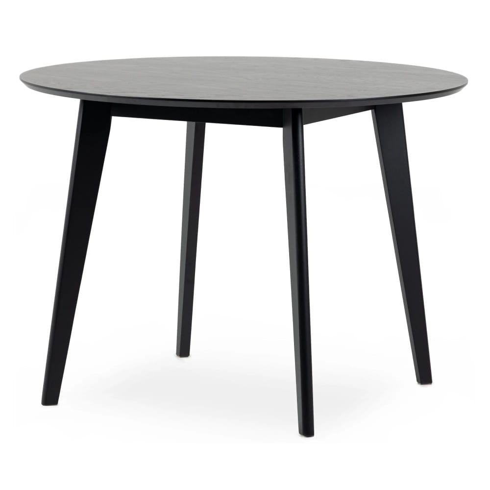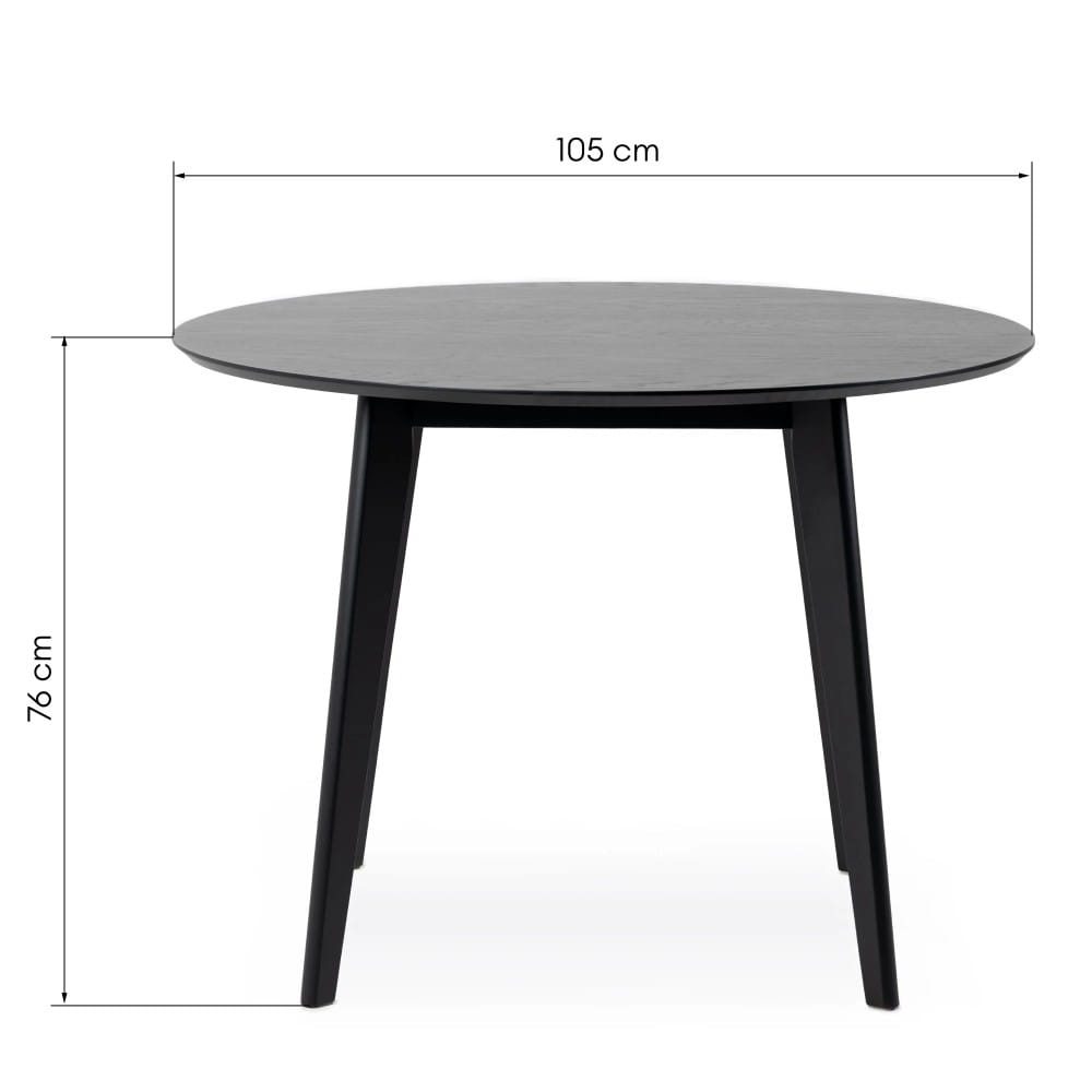 Stół do jadalni ROXBY – czarny, okrągły 105 cm, fornir dębowy, nogi z litego drewna kauczukowego