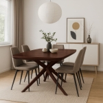 Naturalny fornir dębowy Bawaria eksponuje piękny rysunek słojów, a lite dębowe nogi gwarantują stabilność. Synchroniczny mechanizm wydłuża blat do 250 / 300 cm — idealnie na rodzinne uroczystości.