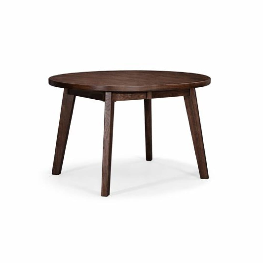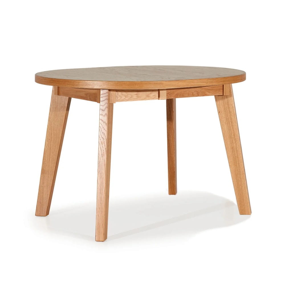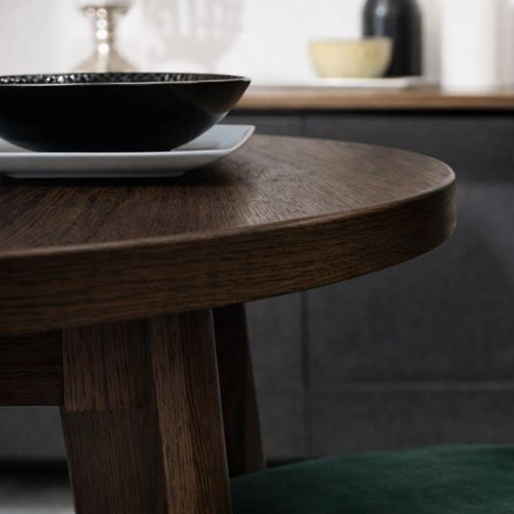 Stół okrągły VELORA – fornirowany stół z litymi nogami dębowymi
