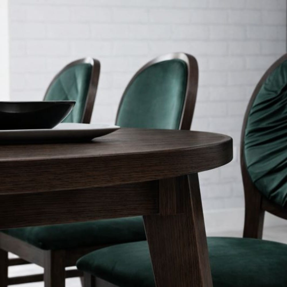 Nogi stołu wykonane są z litego drewna dębowego, co zapewnia stabilność, trwałość i naturalny charakter mebla. Drewno jest starannie wykańczane i lakierowane.