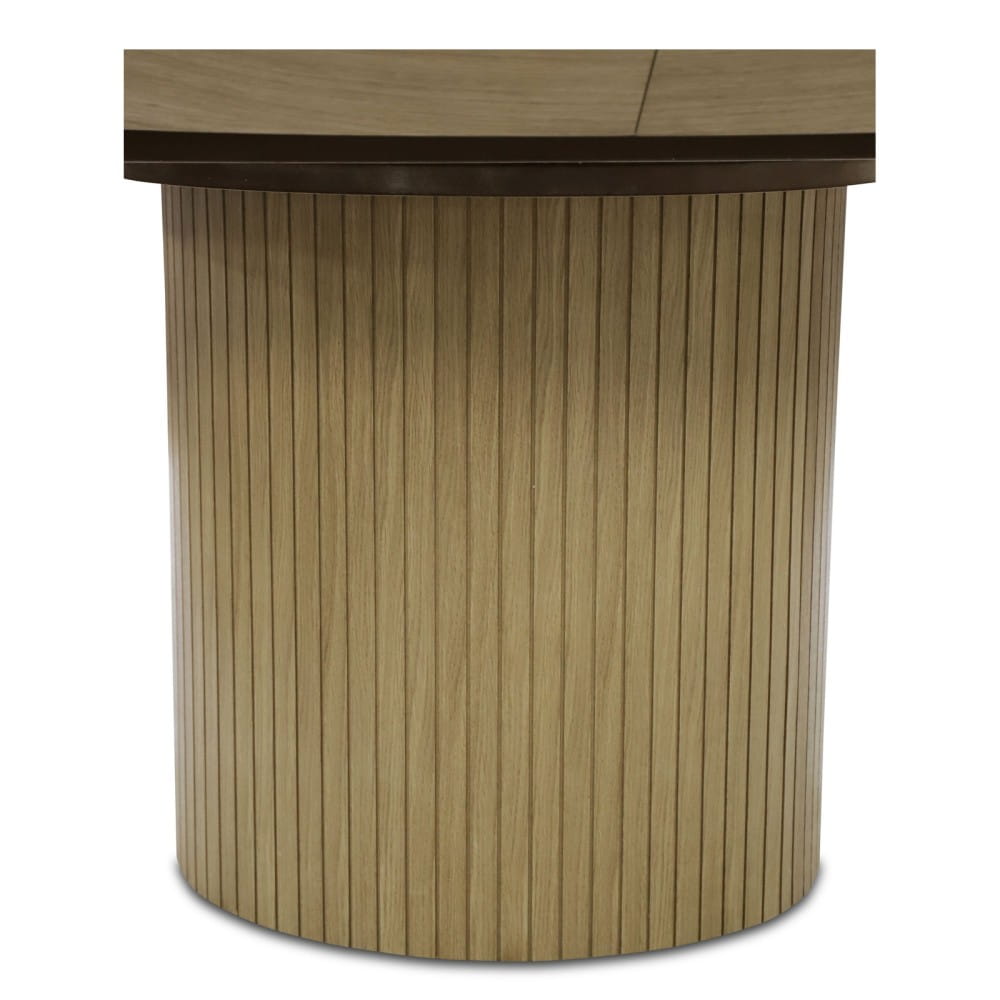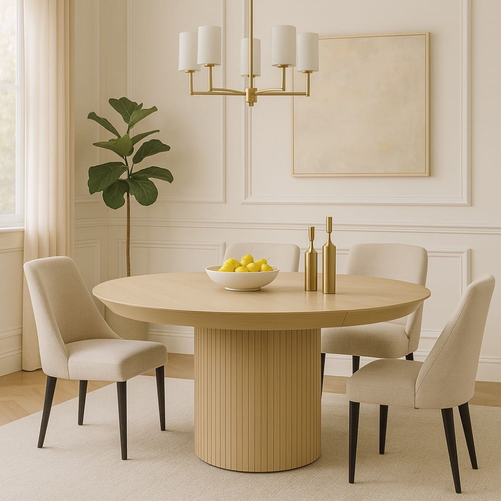 Nowoczesny stół okrągły POLA OAK to połączenie elegancji naturalnego drewna z funkcjonalnością rozkładanego blatu. Ryflowana podstawa, wyprofilowany rant i polska precyzja wykonania tworzą mebel, który przyciąga wzrok i świetnie sprawdza się w codziennym użytkowaniu.
