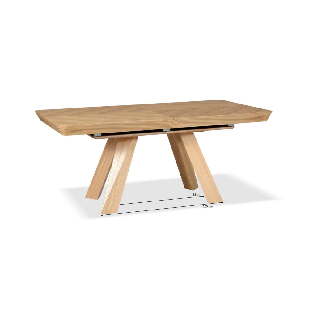 MILANO to jasny akcent w reprezentacyjnej jadalni. Blat z wysokiej klasy płyty MDF oraz naturalnego forniru dębowego (białe wybarwienie z widocznym usłojeniem) chroni lakier PU. System rozkładania POTTKER i 4 wkładki × 50 cm chowane pod blat umożliwiają szybkie wydłużenie do 380 cm*. Nogi z litego dębu gwarantują stabilność.
