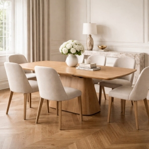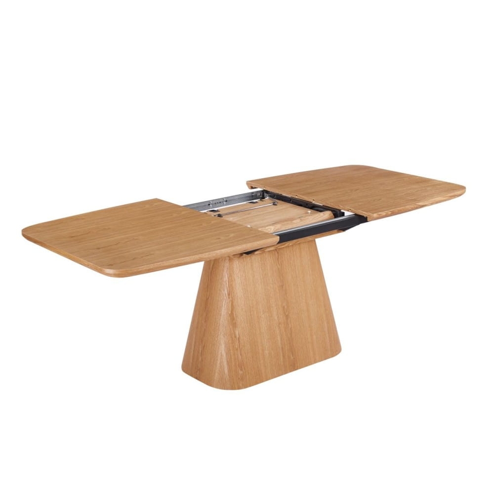 Stół Angelo wyróżnia się architektoniczną podstawą i harmonijną bryłą. Wybarwienie dąb podkreśla naturalny charakter i wprowadza do wnętrza ciepło oraz spokój.