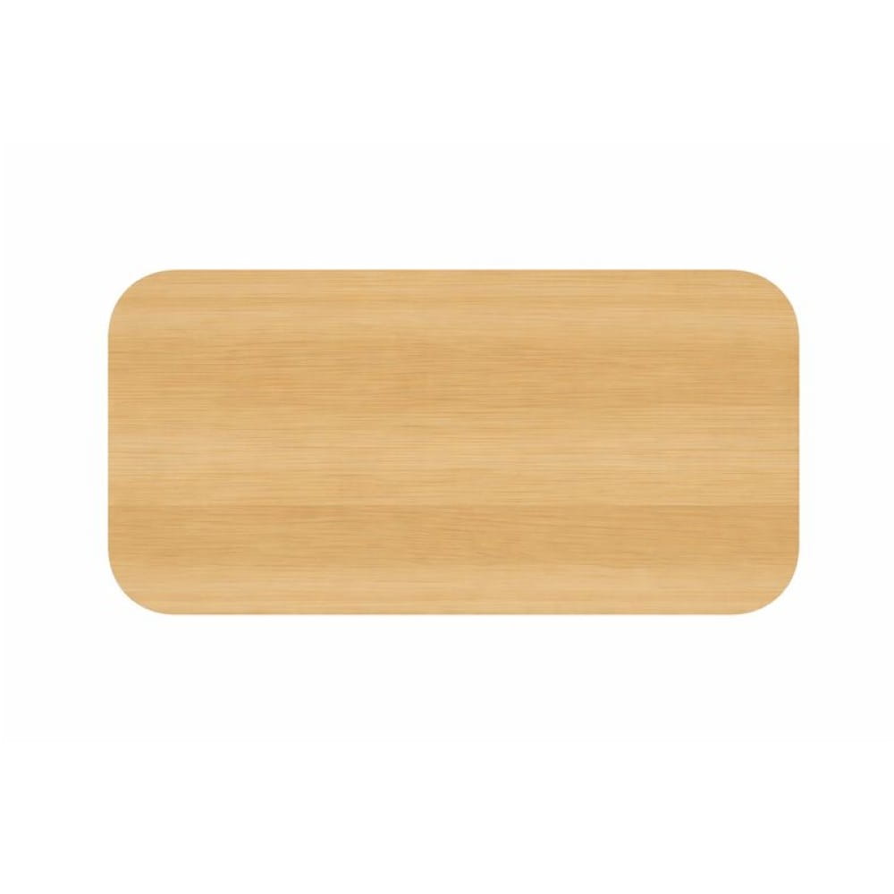 Blat i podstawa wykonane są w całości z litego drewna dębowego, zabezpieczonego matowym lakierem bezpiecznym do kontaktu z żywnością.