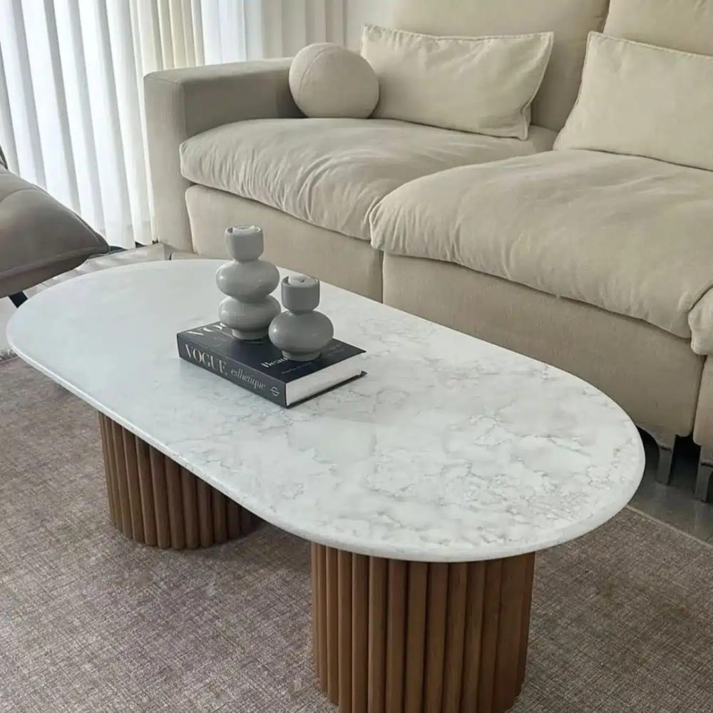 Owalna forma stolika nadaje wnętrzu lekkości i harmonii, a jednocześnie zapewnia wygodną przestrzeń do codziennego użytkowania.