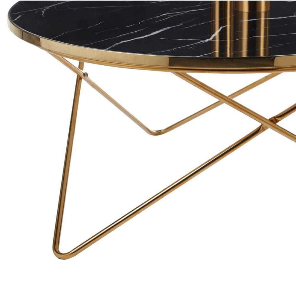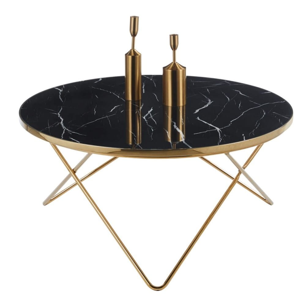 Stolik kawowy MATEO czarny marmur & złota podstawa